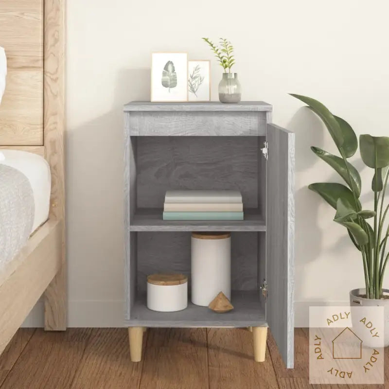 Slitesterkt materiale: Det konstruerte treverket gir nattbordet en jevn overflate, og kjennetegnes av høy kvalitet. Det gir både styrke, stabilitet og god motstandskraft mot fukt, slik at møbelet holder seg pent år etter år, enten det brukes på soverommet eller som en del av andre møbler i huset.Rikelig med lagringsplass: Med to rom bak en praktisk dør får du nok plass til å organisere blader, bøker, fjernkontroller og småting du gjerne vil ha lett tilgjengelig ved sengen eller sofaen – alt blir ryddig og skjult men fortsatt nært for hånden.Trebein: Benene i heltre eukalyptus gir bordet et naturlig preg og lun atmosfære, samtidig som de bidrar til svært god stabilitet. Dette gjør at nattbordet harmonerer godt med både hagemøbler og møbler til hjemmet generelt.Solid topp: Topplaten er stødig og gir god plass til å vise frem dine favorittdekorasjoner, fotorammer eller grønne planter, slik at møbelet kan tilpasses stilen din og bli en dekorativ detalj i rommet.Enkel rengjøring: Den glatte overflaten sørger for at nattbordet er veldig lett å holde rent, bare tørk over med en fuktig klut – perfekt for deg som ønsker lite vedlikehold på møblene.Advarsel: