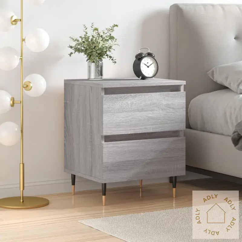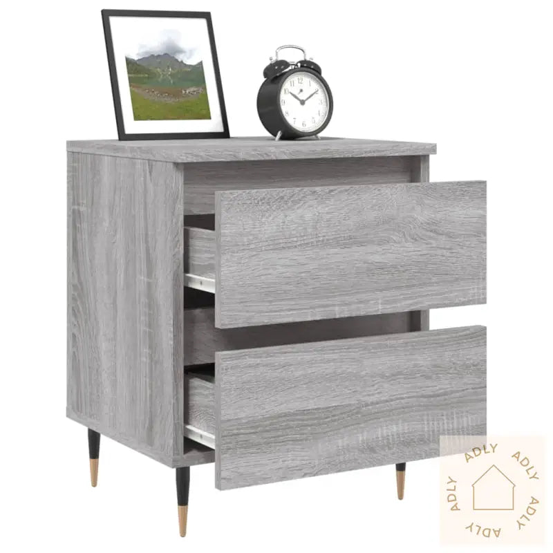 Slitesterkt materiale: Nattbordet er produsert i konstruert tre av høy kvalitet med en jevn, glatt overflate. Dette gir både styrke, stabilitet og god motstand mot fuktighet, noe som gjør det til et holdbart møbel du vil ha glede av lenge. Overflaten er enkel å holde ren – det holder med en fuktig klut.Rikelig med lagringsplass: Med 2 romslige skuffer gir nattbordet deg muligheten til å organisere småting, bøker, fjernkontroller og blader lett tilgjengelig og ryddig. Perfekt for deg som liker orden blant dine møbler til hjemmet.Stabil toppflate: Toppen av nattbordet er robust nok til dekorative gjenstander som bilder eller blomsterpotter, slik at du enkelt kan sette ditt personlige preg på rommet med praktiske møbler.Advarsel: