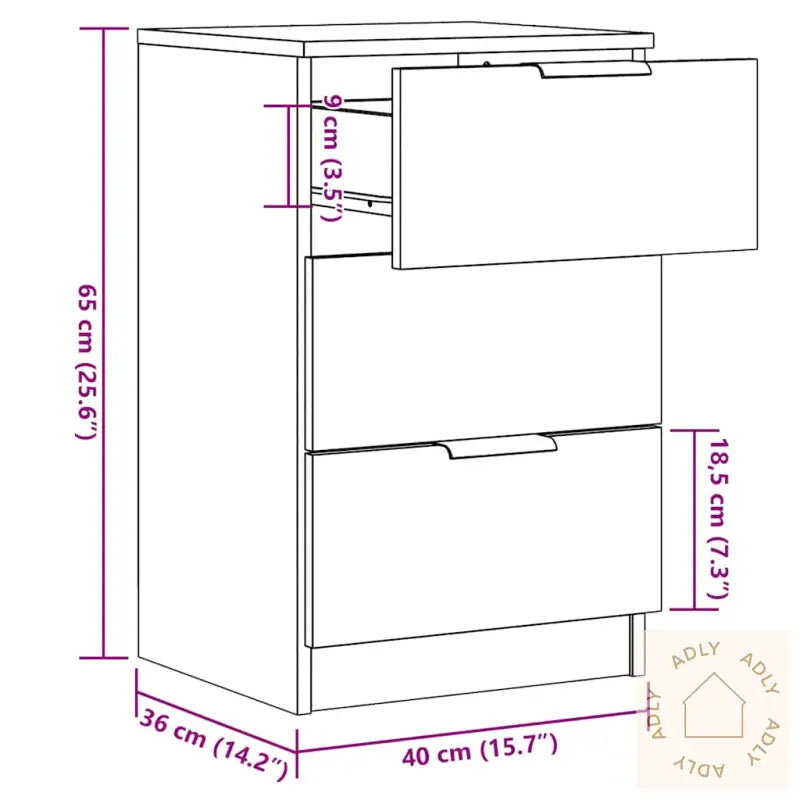 Slitesterkt materiale: Konstruert treverk gir nattbordet en jevn og eksklusiv finish, samtidig som det sikrer styrke, stabilitet og lang levetid. Det motstår fuktighet godt, som gjør det ideelt både for soverom og andre oppholdsrom. Overflaten er lett å holde ren med en fuktig klut, noe som gjør daglig vedlikehold superenkelt.Rikelig med oppbevaringsplass: Nattbordet har en romslig skuff som gir deg orden i småtingene dine – enten det gjelder bøker, magasiner, fjernkontroller eller andre nødvendigheter du ønsker tilgjengelig ved sengen. På denne måten hjelpes du til et ryddig og funksjonelt miljø.Solid topp: Den solide overflaten på nattbordet gir rikelig plass til dekorative elementer, som fotorammer, grønnplanter eller små detaljer, slik at du får vist frem personlige favoritter og gir rommet ditt et personlig preg.Advarsel: