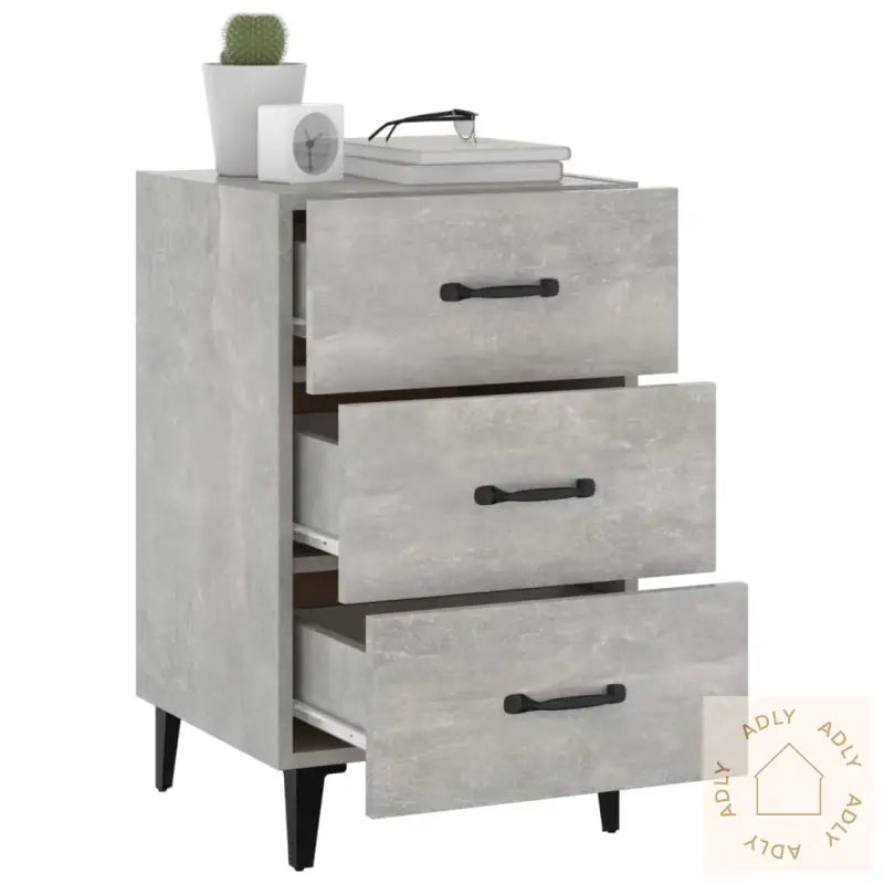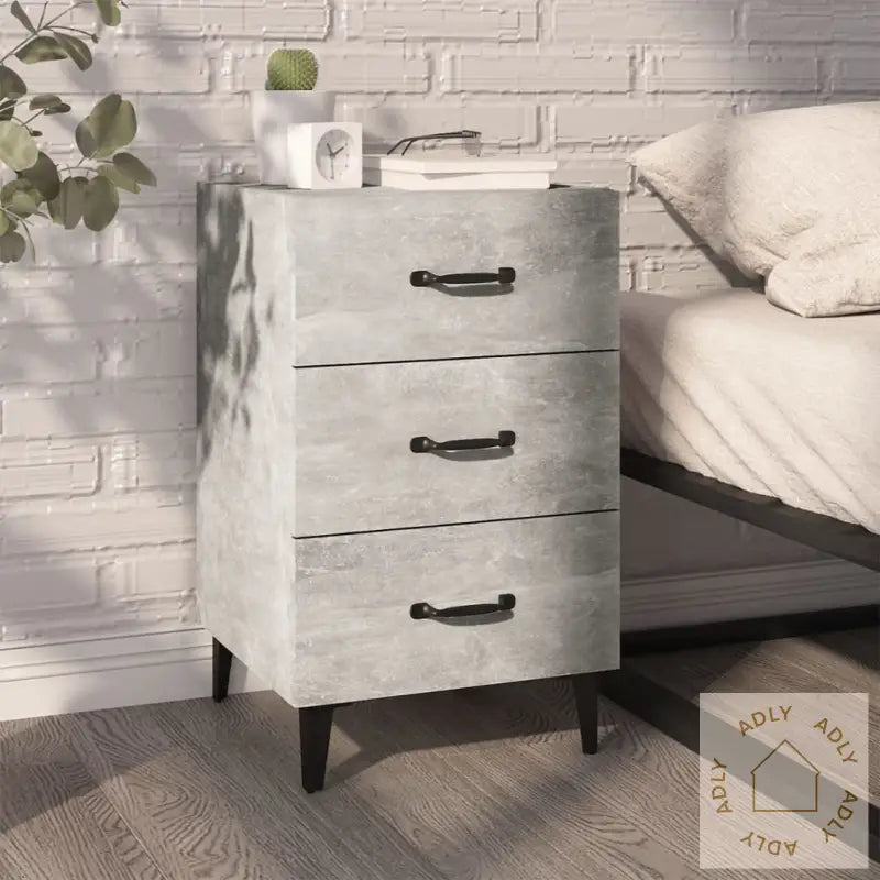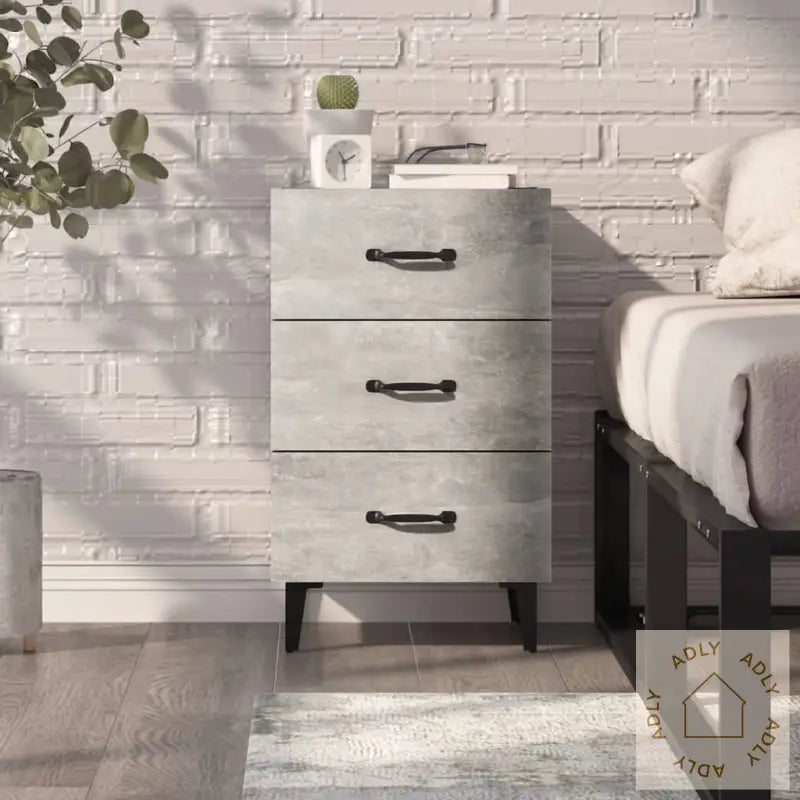Premium materiale: Laget av konstruert tre, har dette nattbordet en jevn og pen overflate med god slitestyrke. Materialet gjør møbelet sterkt, stabilt og motstandsdyktig mot fuktighet – noe som sikrer at det holder seg pent over tid. Den glatte overflaten gjør det i tillegg superenkelt å rengjøre; bare tørk av med en fuktig klut for å holde det rent og fresht.Rikelig med lagringsplass: Med tre praktiske skuffer får du god plass til å organisere alt fra bøker, magasiner og fjernkontroller til andre småting du vil ha lett tilgjengelig. Skuffene bidrar til å redusere rot, slik at hjemmet ditt alltid føles ryddig og oversiktlig, i stil med resten av dine møbler og oppbevaringsløsninger.Stabil topp: Toppen av nattbordet er solid, så du kan trygt plassere dekorative ting som fotorammer, lamper, grønne planter eller favorittpynten din – det lille ekstra som gir rommet personlighet og stil.Advarsel: