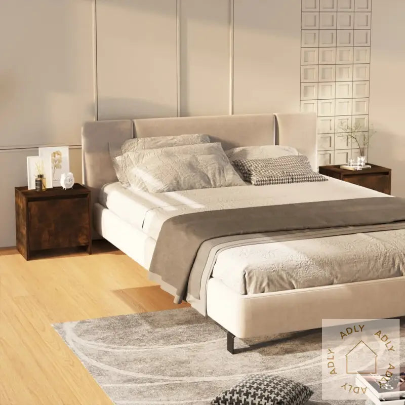 Nattbordene er laget av konstruert tre som gir deg en solid og robust konstruksjon med lang levetid – dette betyr at du kan ha glede av dette settet i mange år fremover. Med én dør på hvert bord får du god og skjult oppbevaringsplass til bøker, magasiner, fjernkontroller eller andre småting du vil ha lett tilgjengelig, men ute av syne. Perfekt for å holde rommet ryddig og organisert! Overflaten er enkel å tørke ren med en fuktig klut, så vedlikehold går helt problemfritt.