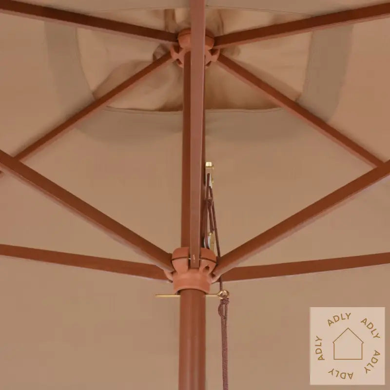 Denne elegante parasollen av tre passer perfekt sammen med hagemøbler, og gir deg den skyggen du trenger når solen steker. I tillegg beskytter den effektivt mot solens skadelige UV-stråler, slik at du kan slappe av utendørs uten bekymringer.