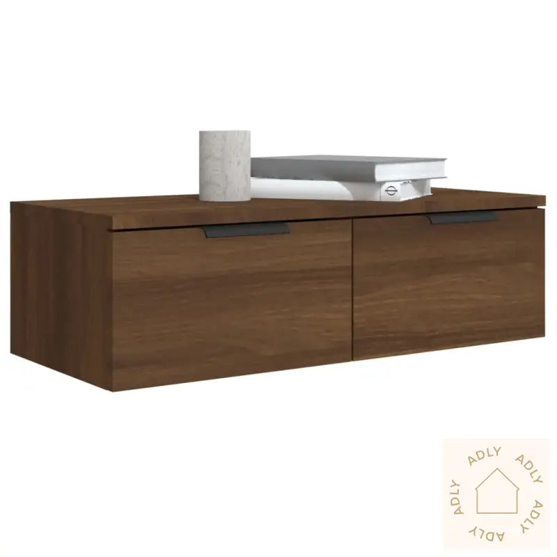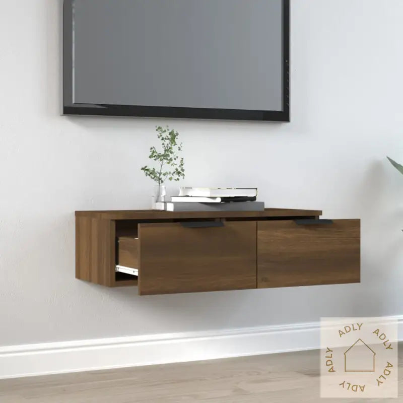 Solid materiale: Det konstruerte treverket tilbyr fremragende kvalitet, har en flott glatt overflate og er kjent for styrke, stabilitet og solid fuktmotstand som gjør at skapet holder seg pent over tid.Rikelig lagringsplass: Med dype skuffer og god hylleplass kan du enkelt holde orden på bøker, småting og andre eiendeler. Alt blir ryddig og lett tilgjengelig.Allsidig design: Fleksible løsninger gjør at dette skapet fungerer både som en svevende TV-benk eller som vegghengt oppbevaring til for eksempel verktøy, stuepynt eller småting. Skapet gjør at selv en helt tom vegg får karakter som et lekkert designelement – perfekt for deg som liker gjennomtenkte detaljer i hjemmet.Merk: