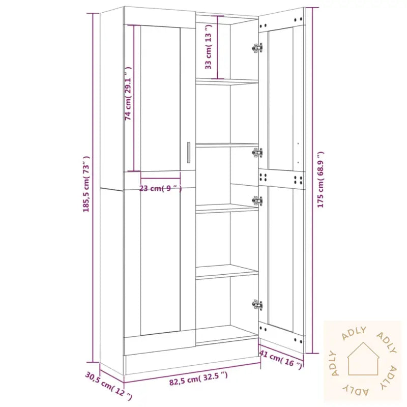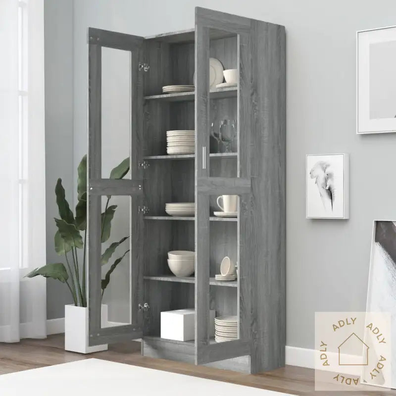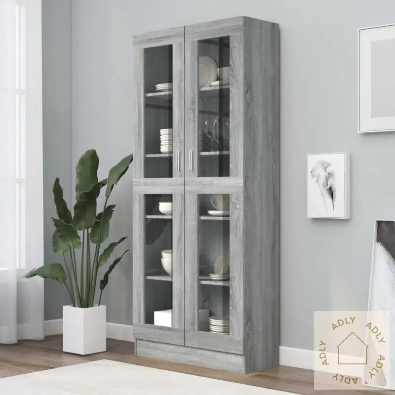 Skrue(r) og plugg(er) til selve veggen følger ikke med – vi anbefaler at du bruker festemidler som passer nøyaktig til din veggtype. Hvis du er usikker på hvilke du bør bruke, lønner det seg å søke råd fra en fagperson. Følg monteringsanvisningen nøye for å sikre trygg og enkel oppsett.Hvert produkt leveres med en detaljert monteringsveiledning i esken, så det er enkelt å sette opp uansett ferdighetsnivå.Farge: Grå eik – passer inn i de fleste interiører og matcher andre moderne møbler.Materialer: Konstruert tre med glass gir et stilrent uttrykk og beskytter innholdet i skapet.Mål: 82,5 x 30,5 x 185,5 cm (B x D x H) gir god størrelse uten å oppta unødvendig mye plass.Praktiske glassdører: To glassdører lar deg presentere favorittbøkene eller dekorasjonene dine trygt og støvfritt samtidig som du har full oversikt over innholdet.Legal Documents: