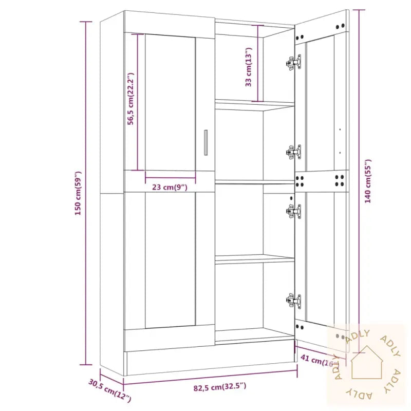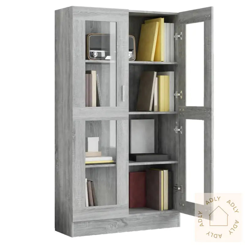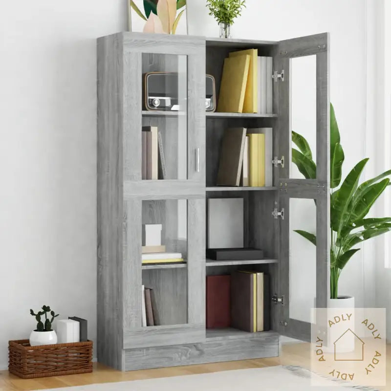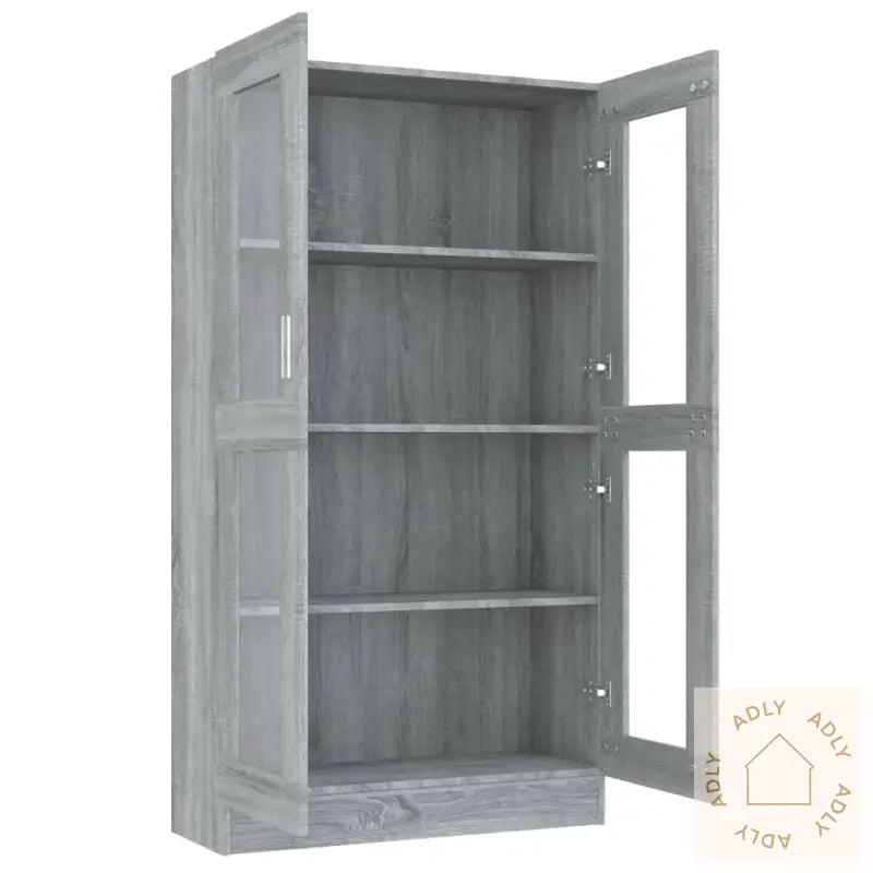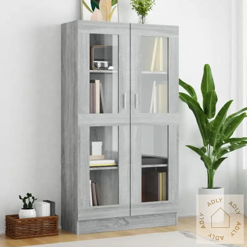 For å unngå at skapet velter, bruk de vedlagte festene og monter skapet sikkert til veggen.Farge: grå eikMaterialer: konstruert tre og glassMål: 82,5 x 30,5 x 150 cm (B x D x H)Inneholder 4 rom og 2 glassdørerKrever monteringLegal Documents: