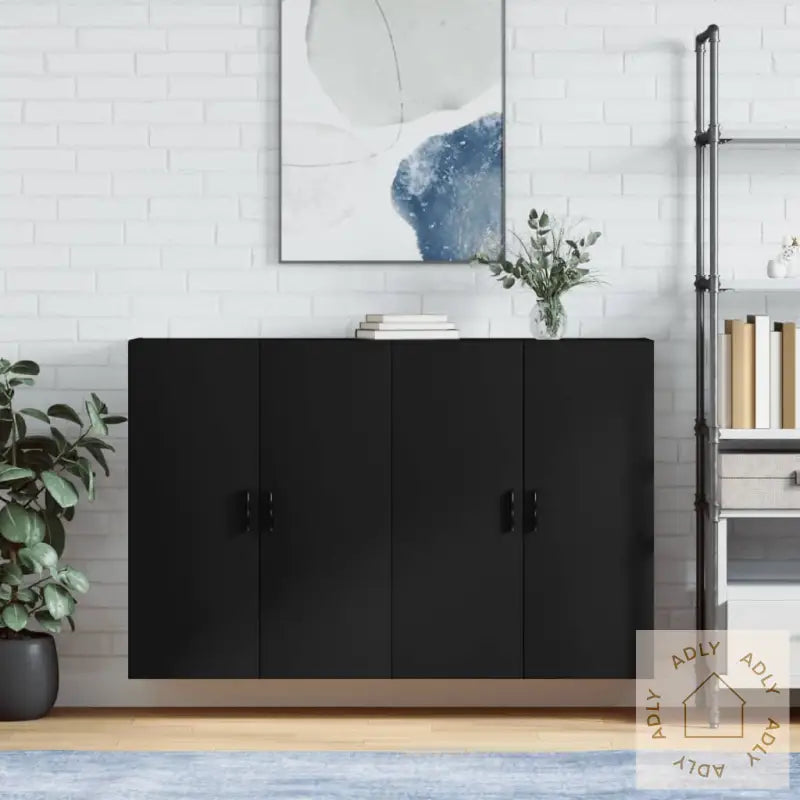 Skruer og plugger for veggmontering følger ikke med. Velg alltid riktig monteringstilbehør til akkurat dine vegger. Er du usikker, bør du kontakte en fagperson. Følg instruksjonene nøye for trygg og stabil montering.Farge: SvartMateriale: Konstruert treMål (hver): 69,5 x 34 x 90 cm (B x D x H)Montering kreves: JaLeveransen inneholder:2 x vegghengte skap