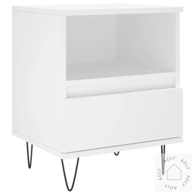 Slitesterkt materiale: Det solide konstruerte treverket har en jevn overflate og varer lenge. Dette gir ikke bare et stilig preg, men gjør også at nattbordene tåler daglig bruk, samt fuktighet typisk i norske hjem. Overflaten er dessuten enkel å vedlikeholde – det holder å tørke over med en fuktig klut.Rikelig med lagringsplass: Med både skuff og åpent rom får du praktiske oppbevaringsmuligheter for alt fra magasiner og bøker til småting som fjernkontroller. Perfekt for deg som liker å ha favorittboken eller andre nødvendigheter innen rekkevidde.Solid topp: Den robuste bordplaten gir ekstra plass der du kan vise frem dekorative ting, fotorammer eller kanskje grønne potteplanter for et personlig preg på soverommet.Moderne metallben: De stilrene bena i metall gir nattbordet en moderne vri, samtidig som de sørger for god stabilitet og lang holdbarhet. Dette gjør nattbordet lett å matche med dine andre møbler eller bokhyller og stående hyller.Advarsel: