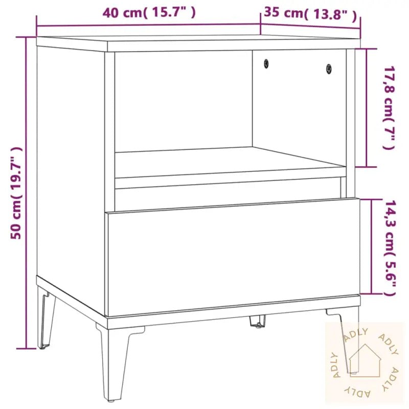 Slitesterkt materiale: Bordene er produsert i konstruert tre av høy kvalitet, som har en glatt og fin overflate. Dette solide materialet gir både styrke, stabilitet og sikrer motstand mot fuktighet, noe som gjør nattbordene svært holdbare.Praktisk lagringsplass: Hvert nattbord har ett åpent rom og en romslig skuff, slik at du enkelt kan organisere alt fra bøker og blader til småting du vil ha for hånden om natten. Perfekt for deg som liker orden og ønsker å utnytte plassen maksimalt, akkurat slik du gjør med gode bokhyller og stående hyller.Metallføtter: Stødige føtter i metall gir en kul industriell stil som skaper kontrast i interiøret, samtidig som de øker stabiliteten og sørger for at bordene står trygt.Stabil og solid bordplate: Toppen av nattbordet gir deg god plass til å vise frem favorittdekorasjoner, familiebilder eller vakre potteplanter, slik at du får et personlig uttrykk på soverommet eller der du måtte ønske å bruke møbelet.Alle nødvendige deler og monteringsveiledning følger med i esken, så montering går veldig enkelt og greit.