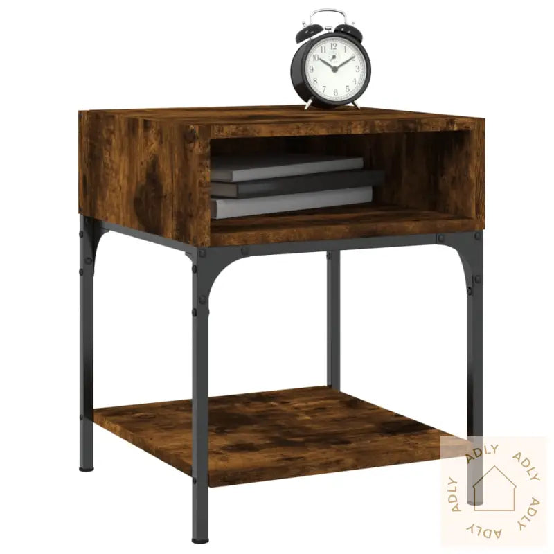 Slitesterkt materiale: Det konstruerte treverket sørger for lang levetid, samtidig som den glatte overflaten gjør det enkelt å holde rent. Materialet gir også god motstand mot fuktighet, noe som sikrer at møbelet holder seg pent lenge.God lagringsplass: Skapet har rikelig med oppbevaringsrom, ideelt for å samle småting og holde alt fra bøker, briller og fjernkontroller ryddig og enkelt tilgjengelig – du får orden på dine daglige nødvendigheter rett ved sengekanten eller sofaen.Justerbare føtter: Høyden på føttene kan reguleres, så nattbordet står stødig selv dersom gulvet er litt ujevnt. Dette gir ekstra fleksibilitet og forhindrer irriterende vingling.Robust ramme: Den sterke jernrammen gir stabilitet til sideskapet, og bidrar til et solid inntrykk som varer. Dette gjør møbelet til et pålitelig valg i flere år fremover, enten du bruker det som et tradisjonelt nattbord eller som del av dine utendørsmøbler under tak.Praktisk overflate: Toppen gir plass til favorittbildene dine, en lampe, dekorasjoner eller blomster – en enkel måte å gi rommet et personlig, friskt og innbydende preg.Advarsel: