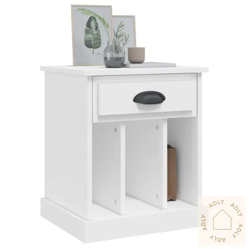 Slitesterkt materiale: Nattbordene er laget av konstruert tre av høy kvalitet, kjent for sin glatte overflate, solide struktur og gode motstand mot fuktighet. Dette gjør at møblene holder seg pene lenge, selv ved daglig bruk.God lagringsplass: Med én romslig skuff og tre åpne rom, får du enkel tilgang til bøker, smarttelefon, vekkerklokke eller andre ting du vil ha innenfor rekkevidde om natten. De er også hendige som små bokhyller og stående hyller der du kan organisere både dekor og praktiske eiendeler.Stabil og solid bordplate: Den robuste toppen gir deg rikelig plass til å vise frem dekorative elementer som bilder, planter eller suvenirer, noe som setter et personlig preg på soverommet og gir mer liv til dine møbler til hjemmet.Godt å vite: