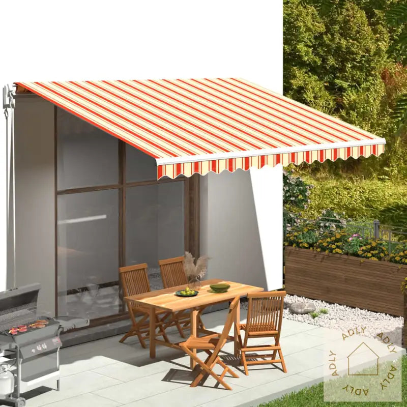 Farge: gul og oransjeMateriale: 100% polyester med PU-beleggStørrelse: 430 x 295 cm (L x B), passer ramme på 4,5 x 3 mUV- og værbestandigVannavstøtendeSkitt- og smussavstøtendeRamme ikke inkludertPakkeinnhold:1 x hovedmarkisestoff1 x pyntekappe