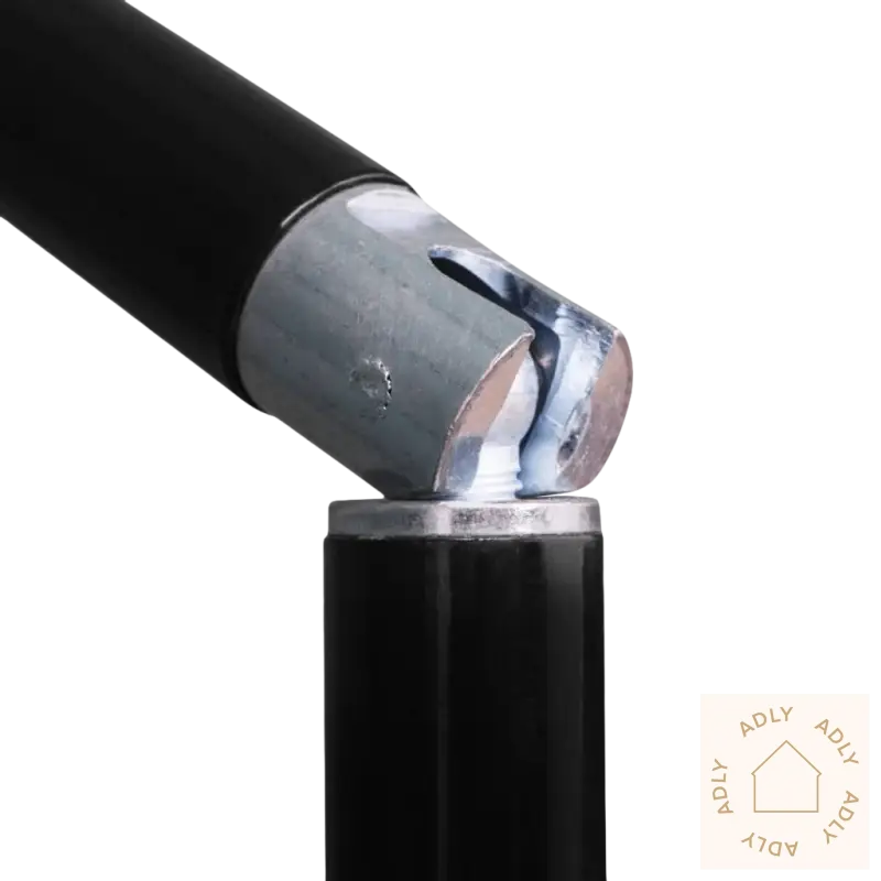 Stolpene er lagd av pulverlakkert stål, noe som gir både utmerket holdbarhet og god stabilitet – perfekt for flere sesonger ved elvebredden. Pulverlakkert stål tåler mye og ruster mindre, og denne typen solide materialer brukes ofte i utendørsmøbler og hagemøbler for nettopp å øke levetiden. De sterke forbindelsene mellom delene gjør at paraplyen står trygt, selv om vinden skulle øke.