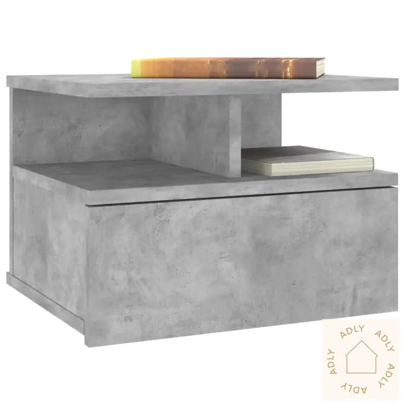 Farge: betonggråMål: 40 x 31 x 27 cm (B x D x H)Materiale: konstruert treMaksimal lastekapasitet (totalt): 50 kgMed en skuff og et åpent romVeggmontertVennligst merk: Skrue(r) og plugg(er) for innsiden av veggen er ikke inkludert. Finn og bruk skrue(r) og plugg(er) som passer for veggene dine. Hvis du er usikker, søk profesjonelle råd. Les og følg hvert trinn i instruksjonene nøye.