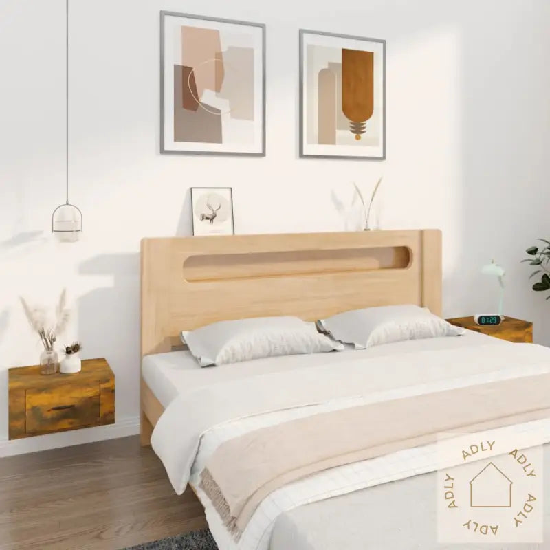 Slitesterkt materiale: Laget av høykvalitets konstruert tre, gir disse flytende nattbordene en glatt overflate og robust konstruksjon. Materialet er kjent for sin holdbarhet, stabilitet og motstand mot fuktighet, noe som gjør dem spesielt godt egnet til langvarig bruk i hjemmet ditt.Rikelig med lagringsplass: De smarte oppbevaringsmulighetene gir deg god plass til oppbevaring av bøker, ladere og andre nødvendigheter, så alt er systematisk organisert og lett tilgjengelig rett ved sengen din.Veggmontert funksjon: Fordi nattbordene monteres på veggen, frigjøres gulvplassen og det blir enklere å rengjøre under dem – perfekt for små rom eller for deg som ønsker en minimalistisk stil i hjemmet sitt. Disse flytende nattbordene gir et ryddig og moderne uttrykk.Robust topp: Den solide toppen er ideell for å plassere dekorative elementer som bilder, potteplanter eller unike pyntegjenstander, slik at du kan sette et personlig preg på rommet ditt og vise frem det du liker best.Merk: