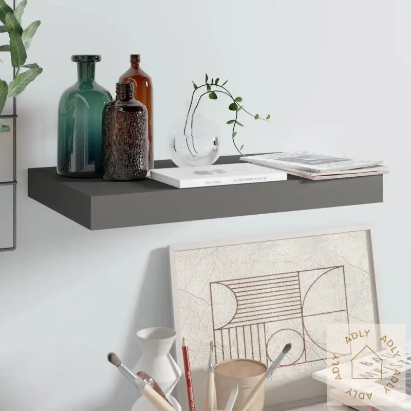 Farge: høyglans gråMaterialer: bikake MDF, metallMål: 40 x 23 x 3,8 cm (L x B x H)Maksimal lastekapasitet: 5 kgUsynlig monteringssystemMontering kreves: ja