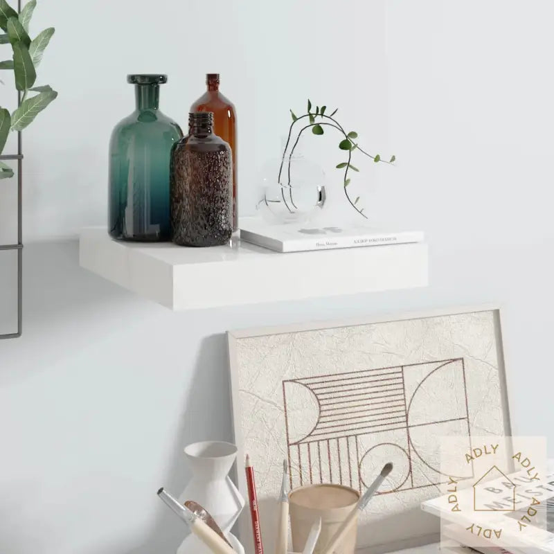 Farge: høyglans hvitMaterialer: bikake MDF, metallMål: 23 x 23,5 x 3,8 cm (L x B x H)Maksimal lastekapasitet: 5 kgUsynlig monteringssystem for en sømløs lookMontering kreves: ja