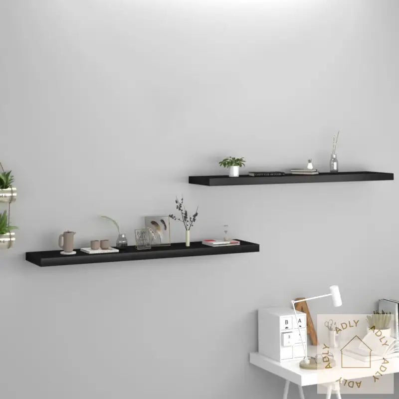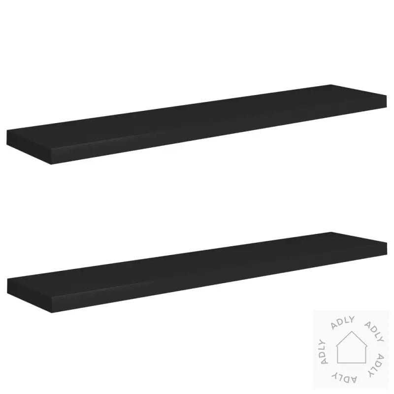 Farge: svartMaterialer: bikake MDF, metallMål: 120 x 23,5 x 3,8 cm (L x B x H)Maksimal lastekapasitet (hver): 10 kgUsynlig monteringssystemMontering kreves: jaLeveransen inneholder:2 x vegghyller