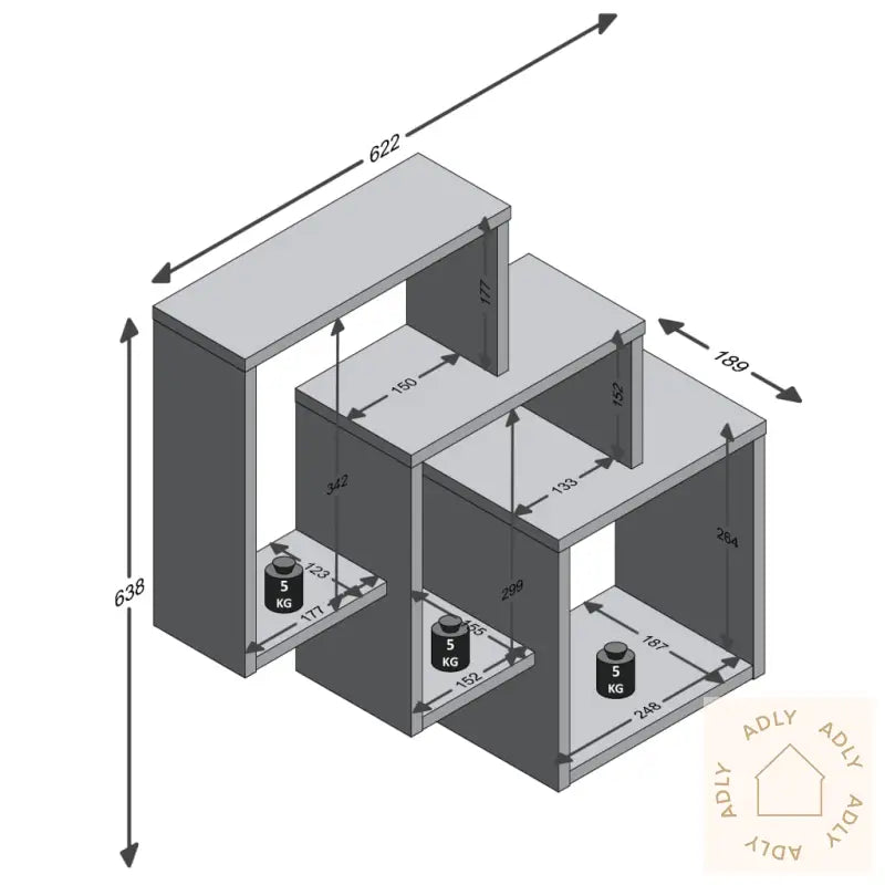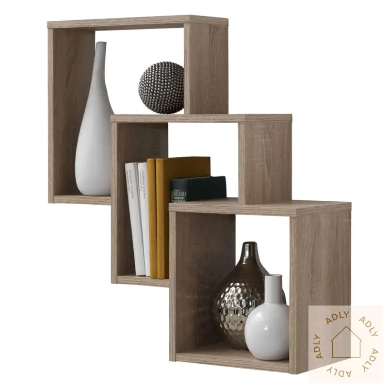 Farge: eiketreMateriale: melaminbelagte sponplaterMål: 62 x 19 x 64 cm (B x D x H)Vegghengt hylle med 3 romHvert rom kan holde opptil 5 kgEnkel monteringLeveransen inkluderer kun hyllenLaget i Tyskland