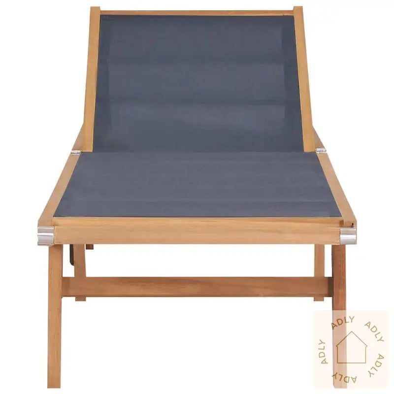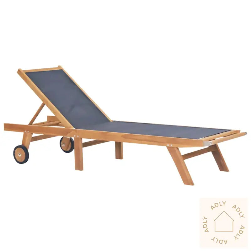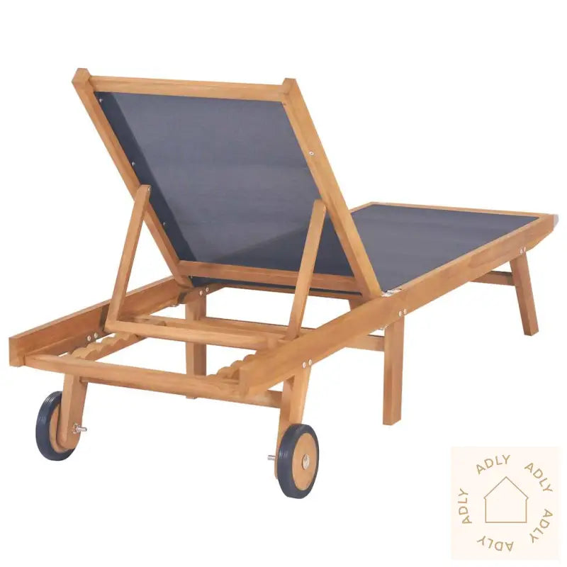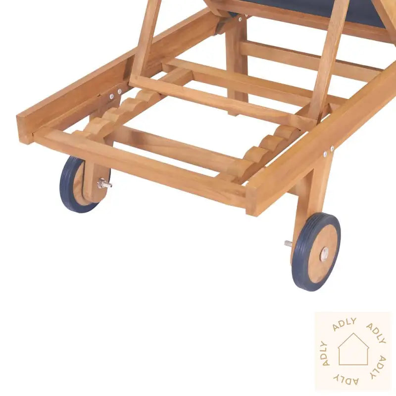 Materiale: Finslipt teak løvtre med vannbasert finish + textilene-stoffMål: 206 x 60 x 35 cm (L x B x H)Justerbar ryggstøtte med 5 innstillingerSammenleggbarMed håndtak og to hjulPute inkludert: Nei