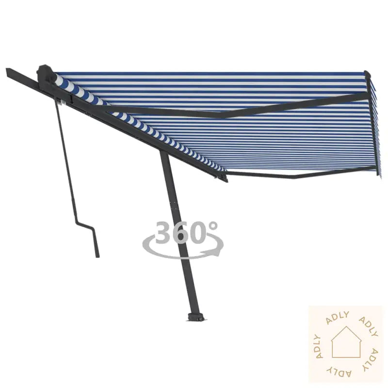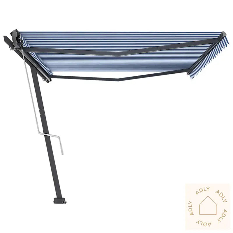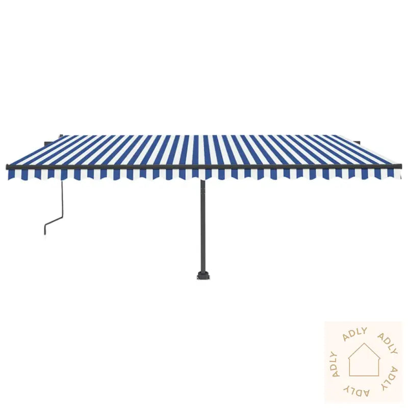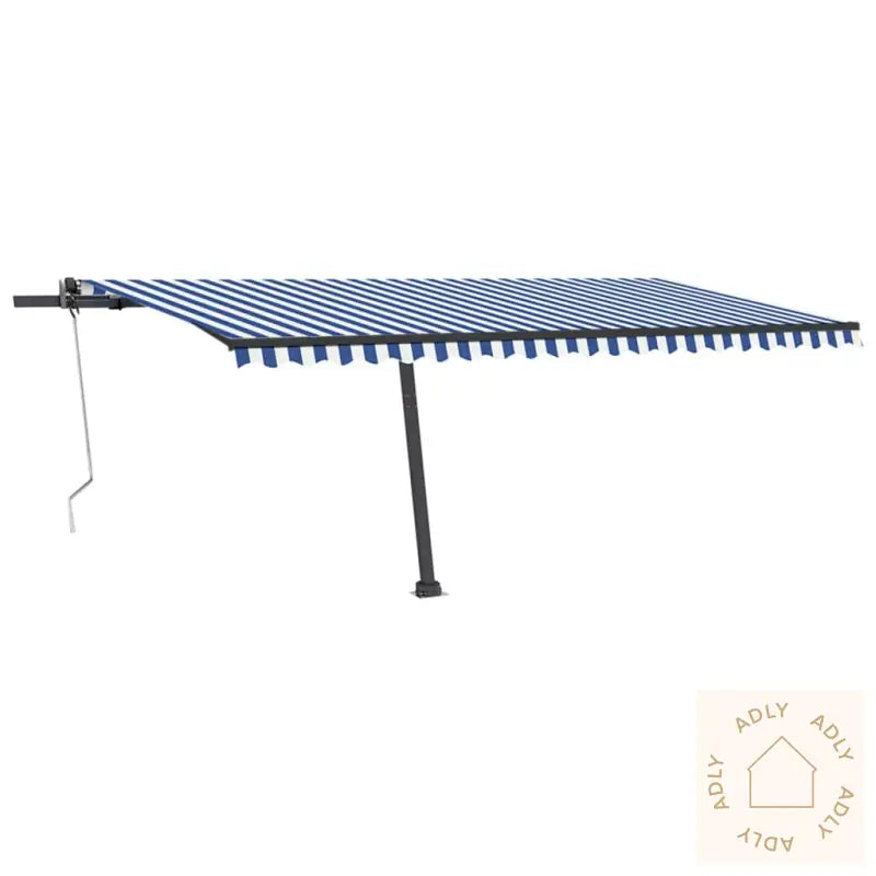Denne uttrekkbare markisen er designet for å tåle norske utemiljøer. Den solide rammen er laget av pulverlakkert aluminium, som ikke bare gir et stilrent uttrykk i antrasitt, men også sørger for at markisen er både lett og robust, og motstandsdyktig mot rust. Selve markisestoffet kommer i blått og hvitt, og er sydd i polyester av høy tetthet med PU-belegg. Dette beskytter effektivt mot solens UV-stråler og gjør stoffet vannavvisende, så du kan nyte skyggen og holde deg tørr selv om det kommer en regnskur.