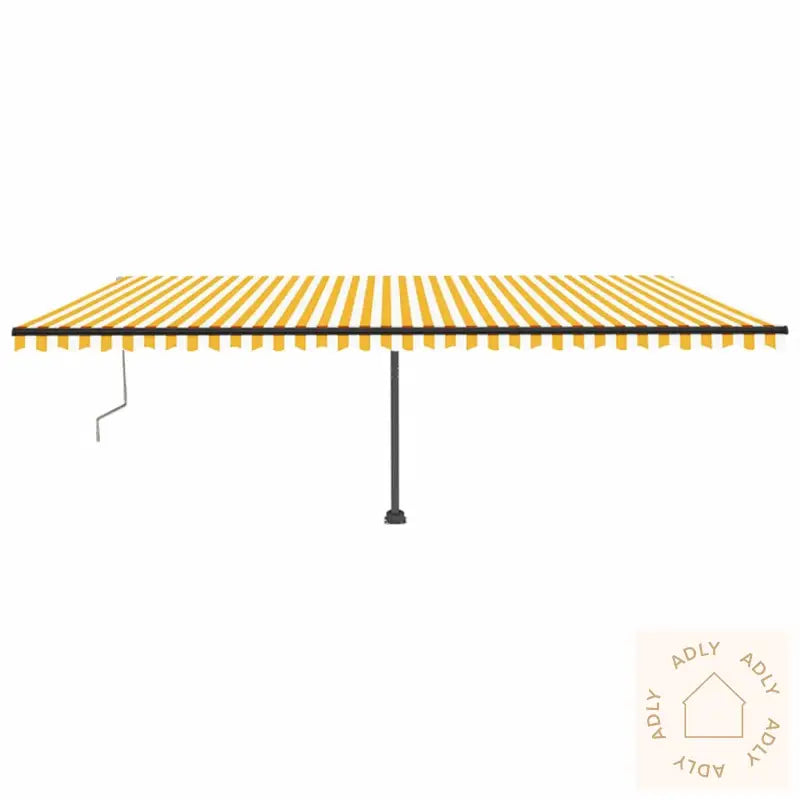 Farge stoff: gul og hvitFarge ramme: antrasittMaterialer: pulverlakkert aluminium, 100% polyesterstoff med PU-beleggSamlet mål: 600 x 350 cm (B x H)Mål stolpe: 600 x 245 cm (B x H)Spenning: 230V~ , 0,95A; 50/60 HzEffekt: 226 WMoment: 40 NmHastighet: 13 rpmMontering kreves: ja