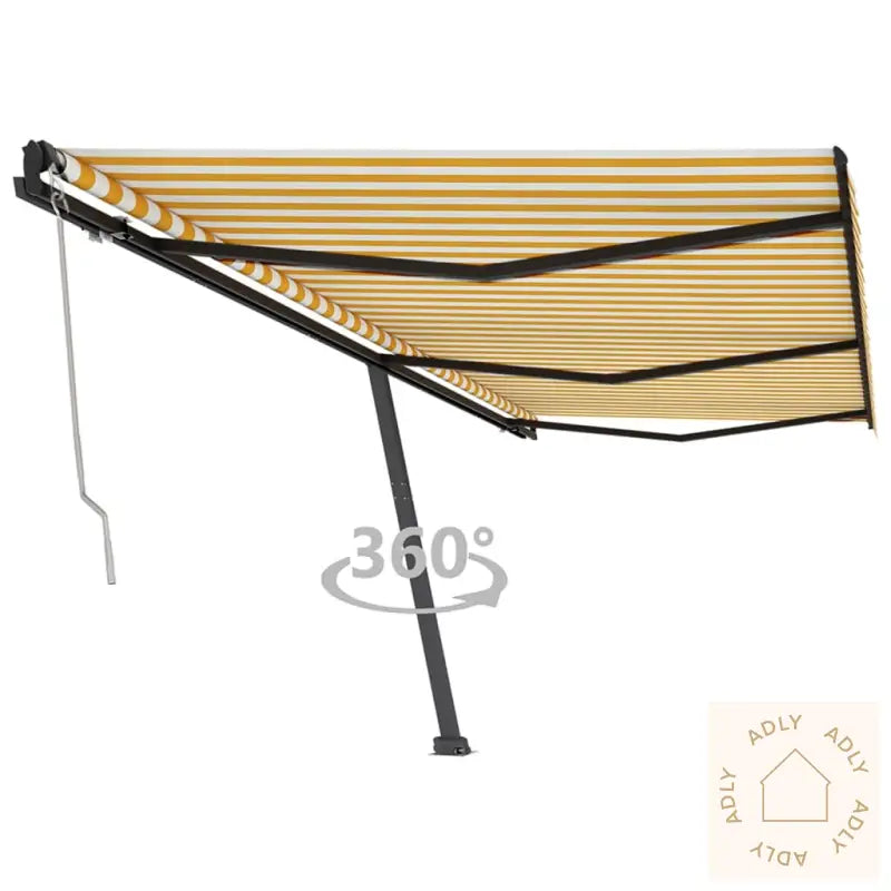 Med den brukervennlige fjernkontrollen ruller du den uttrekkbare markisen ut og inn på et øyeblikk, mens den ekstra lange håndsveiven sørger for smidig manuell betjening hvis du ønsker det. Den solide basen kan roteres 360 grader, så du får full fleksibilitet og tilpassing uansett hvordan uterommet ditt eller terrassen er formet. Perfekt for deg som vil ha litt skygge til kaffekoppen, eller bare vil oppgradere uterommet og møblene til hjemmet med noe funksjonelt og fint.