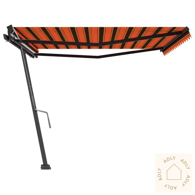Farge stoff: oransje og brunFarge ramme: antrasittMaterialer: pulverlakkert aluminium, 100% polyesterstoff med PU-beleggSamlet mål: 450 x 300 cm (B x H)Mål stolpe: 450 x 245 cm (B x H)Montering kreves: ja
