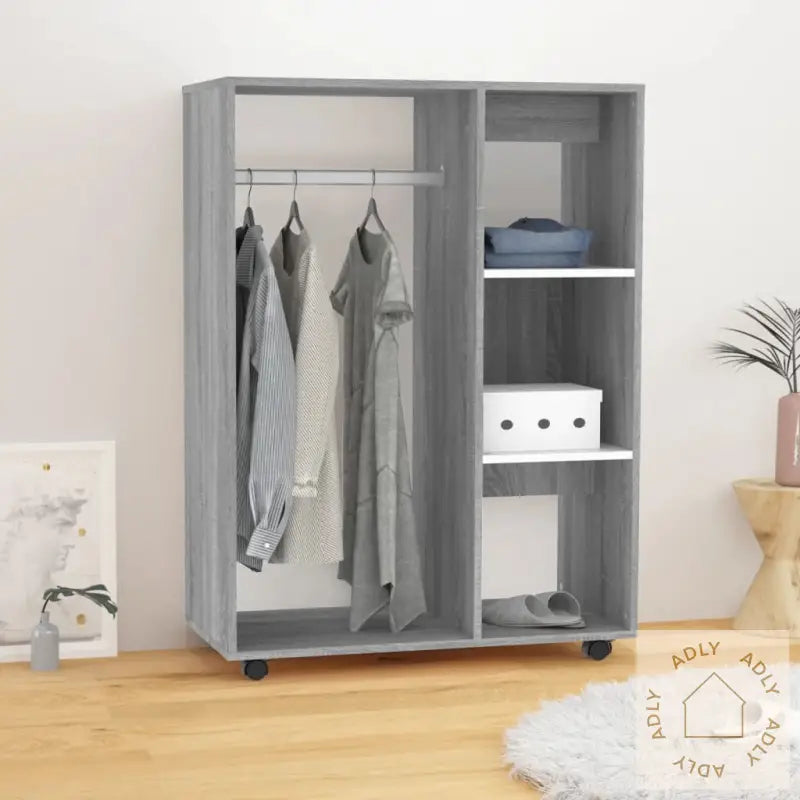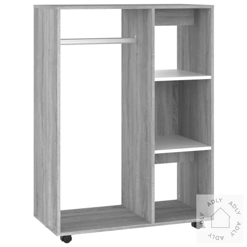 Premium materiale: Skapet er laget av konstruert treverk i høy kvalitet, med en glatt og elegant overflate. Dette materialet gir skapet styrke, varig stabilitet og sørger for god motstand mot fukt, noe som gir deg solide møbler med lavt behov for vedlikehold.Rikelig med oppbevaring: Garderoben har et romslig åpent oppbevaringsrom der du enkelt kan henge opp klær. De tre sidehyllene lar deg organisere sko, vesker eller annet tilbehør, slik at du har alt samlet og lett tilgjengelig.Enkel bevegelse: Skapet er utstyrt med solide hjul nederst, slik at du raskt og enkelt kan flytte det rundt etter behov. Det gir fleksibilitet enten du skal ommøblere eller vaske.ADVARSEL: