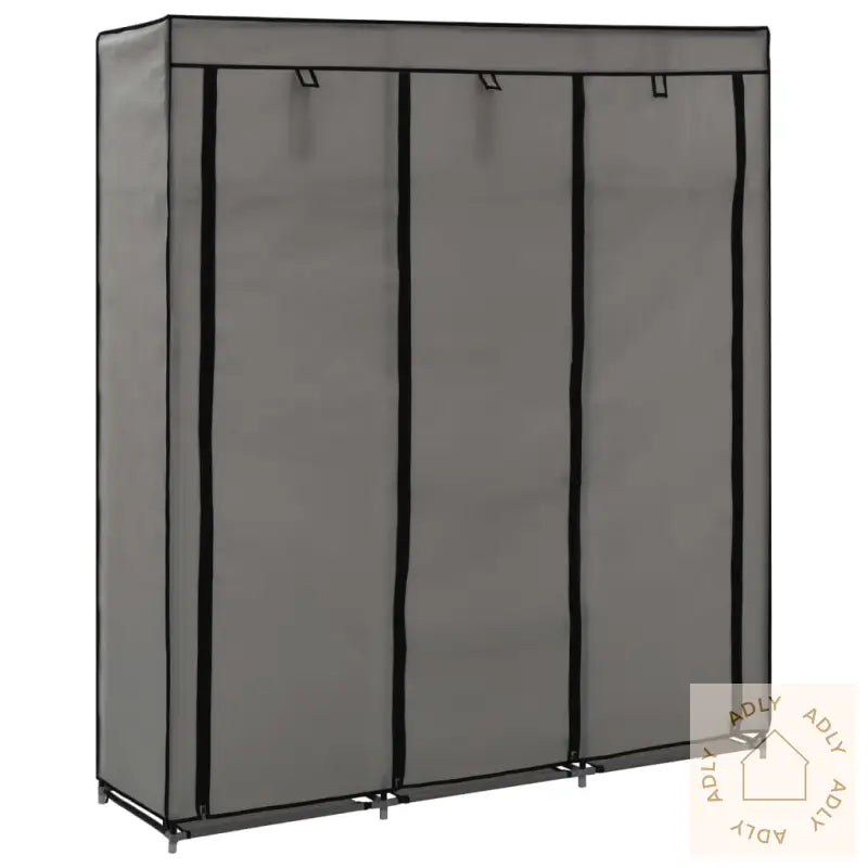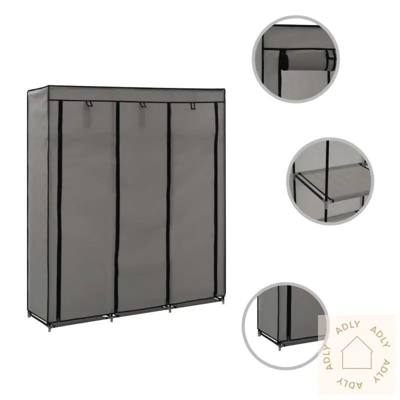 Denne bærbare garderoben er både enkel og praktisk, og designet for å holde klær og sko beskyttet mot støv og smuss – enten du trenger ekstra oppbevaring i kjelleren, på barnerommet, soverommet eller loftet. Garderoben har flere rom og stenger til ulike typer oppbevaring, så du får god plass til både bukser, skjorter, jakker og annet. Trekket kan enkelt rulles opp og festes med borrelås når du skal hente ut noe, og glidelåsene gjør det superlett å åpne og lukke skapet.