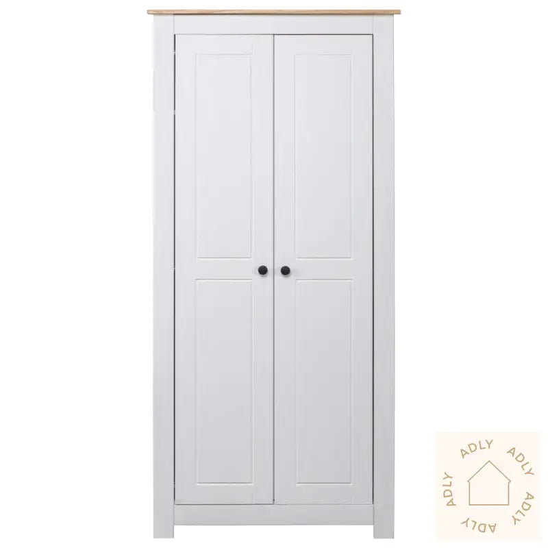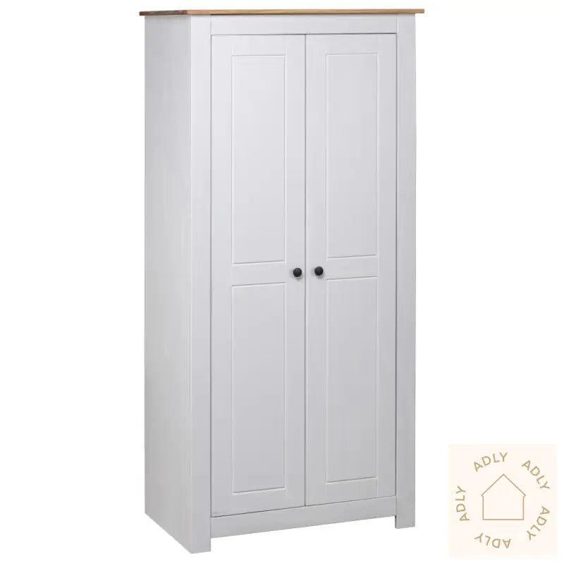 Farge: hvitMål: 80 x 50 x 171,5 cm (B x D x H)Materiale: heltre furuMed 2 rom og hengestang for enkel organisering