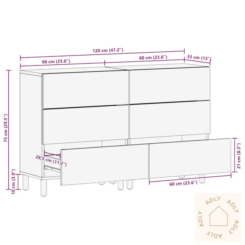 For å forhindre at produktet velter skal det alltid festes med den medfølgende festeanordningen.Materialer: heltre mango, jernSamlet mål: 120 x 33 x 75 cm (L x B x H)Mål (hver): 60 x 33 x 75 cm (L x B x H)Høyde ben: 10 cmMontering kreves: jaLeveransen inneholder:2 x skjenker