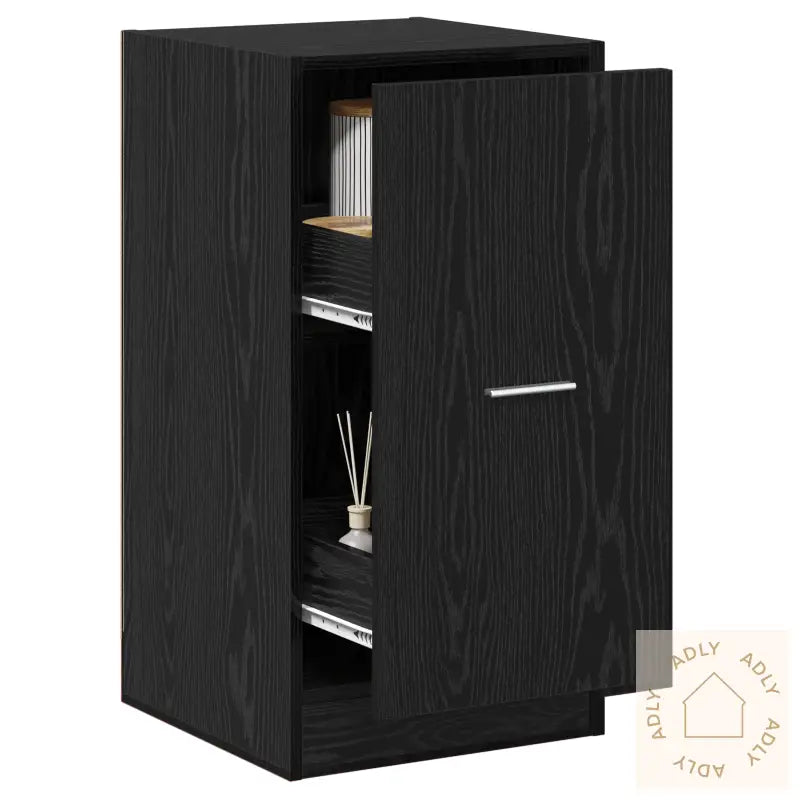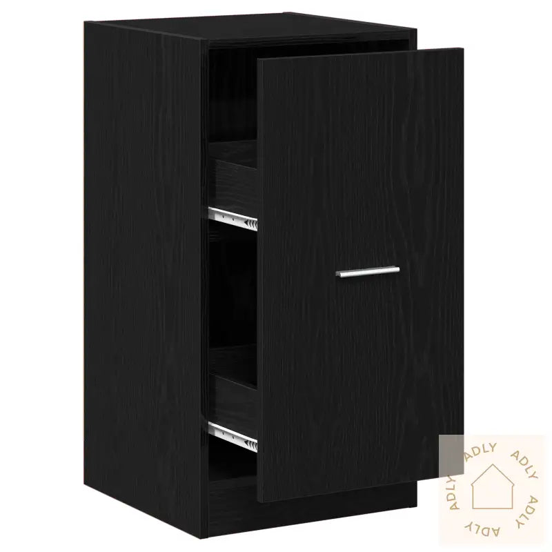 Holdbart materiale: Laget av slitesterkt konstruert tre tåler skapet daglig bruk og holder seg pent lenge. Den sorte, matte finishen bidrar til enkelt vedlikehold og gjør at skapet beholder sitt elegante uttrykk.