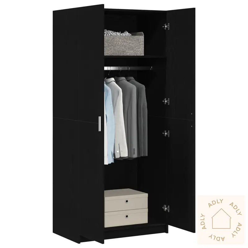 Farge: SvartForm: RektangulærMateriale: Konstruert treFinish: MattInnen-/utenfor: Kun innendørsAntall dører: 2Deksel inkludert: NeiRom: SoveromMontering inkludert: NeiDimensjoner: 80 x 50.5 x 180 cm (L x B x H)Overflatehøyde: 1.0 cmVekt: 26.8 kgGynge: NeiMerke:Levering inneholder: 1 garderobeMontering kreves: JaAnbefalt antall personer for montering: 2