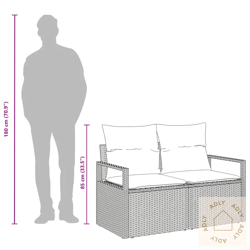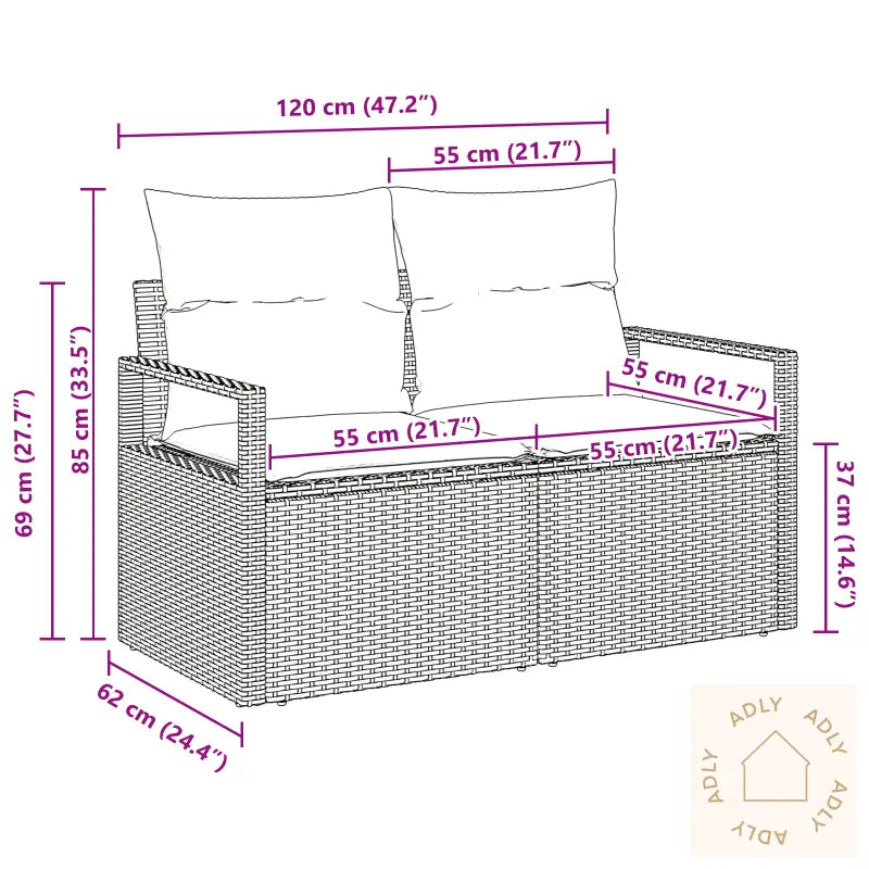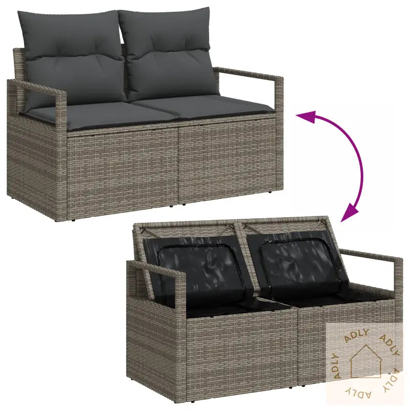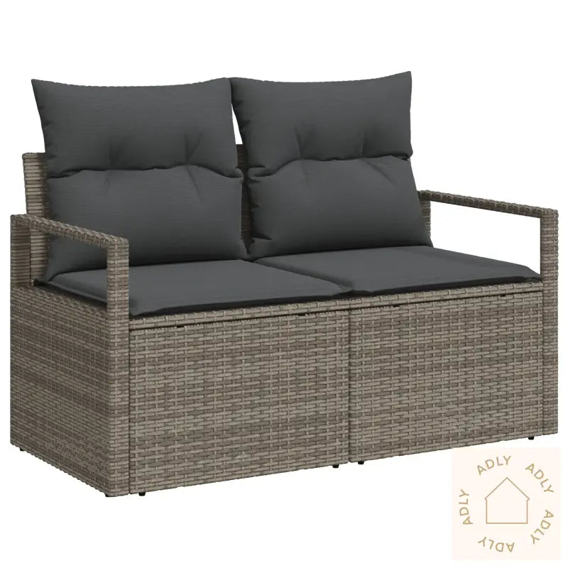 Komfy sitteplasser: De myke, tykke putene gir deg og gjestene dine et deilig sted å slappe av – perfekt for lange sommerdager eller hyggelige kvelder ute. Putene gir god støtte og kan enkelt tas inn hvis været skifter.Praktisk lagring: Med smart oppbevaring under setet kan du holde ekstra utendørsputer, tepper eller andre møbler til hjemmet skjult for regn og vind. Praktisk for mindre uteplasser der du vil spare plass.Bygget for å vare: Kvalitetsmaterialer som værbestandig polyrotting og slitesterke polyesterputer sikrer lang levetid, så det er bare å lene seg tilbake sesong etter sesong uten å bekymre deg for slitasje.Stilig utseende: Det moderne designet sammen med den nøytrale gråfargen passer perfekt sammen med andre utendørsmøbler og gir hjemmet ditt et rent og tidløst uttrykk.Enkel stell: Sofaen er lett å vaske over med en fuktig klut, og trekkene til putene har glidelås slik at de enkelt kan tas av og vaskes etter behov. Sånn holder du møblene dine alltid friske og rene.Farge: GråForm: RektangulærMateriale: Syntetisk polyrottingFinish: TeksturertInne/Ute: Kun utendørsTrekk inkludert: JaRom: Garten und TerrassegBatterier inkludert: NeiMaksimalt antall personer: 3Maksimal vekt: 250 kgMål: 120 x 62 x 69 cm (L x B x H)Sittedybde: 50 cmSittekapasitet: 2Svipper: NeiMerke: Leveransen inneholder: UtesofaMontering kreves: JaAnbefalt antall personer for montering: 2