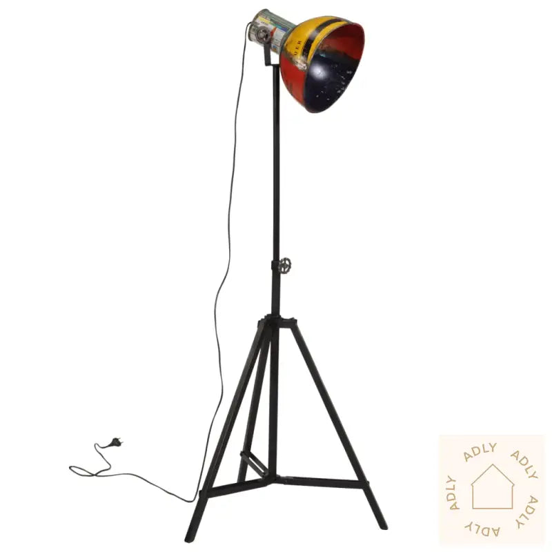 Robust materiale: Jern gir denne gulvlampen ekstra styrke og stabilitet, og holder seg godt selv i røff bruk. Perfekt for deg som liker slitesterke møbler til hjemmet med ekstra karakter.Håndmalt: Hver lampe er individuelt håndmalt, så ingen to lamper blir helt like – fargevariasjonene gir hver enkelt lampe unike detaljer. Det skaper en personlig og rustikk look du ikke finner maken til.E27-sokkel: Denne lampen har en praktisk E27-sokkel som gjør det lett å tilpasse lyssettingen akkurat slik du ønsker. Du kan bruke hvilken som helst E27-pære (maks 25 watt) – velg mellom varmt eller kaldt lys for å sette stemningen, enten det er for kos, arbeid eller avslapping.Justerbart design: Høyden justeres enkelt fra 90 til 150 cm, og du kan vinkle lampeskjermen for å få perfekt lys rett der du trenger det, enten det er i et mørkt hjørne, ved skrivebordet eller over favorittstolen din.Industriell stil: Lampeskjermen i flerfarget, gjenvunnet jern gir en kul miks av farger og et grovt uttrykk. Dette gjør gulvlampen ekstra fin både i moderne og klassiske rom, og gir rommet det lille ekstra. Den passer fint sammen med møbler til hjemmet og tilfører et hint av industriell sjarm uansett innredning.Godt å vite:
