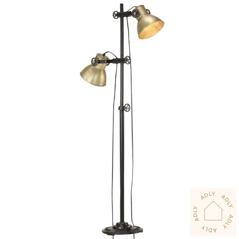 Farger: svart og messingMaterialer: jern, støpejernDimensjoner: 28 x 140 cm (Diameter x H)Type sokkel: E27Maksimal effekt: 25 WMed 2 lampeskjermerGulvbryter er inkludertLavspenningsdirektivLyspærer er ikke inkludert