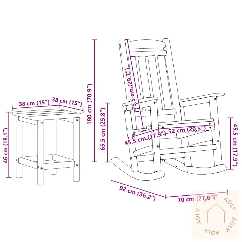 Dette utendørs gyngestolsettet kombinerer moderne stil med solid funksjonalitet, og skaper et innbydende hjørne i hagen, på terrassen eller verandaen hvor du virkelig kan koble av. Settet består av to gyngestoler og et rektangulært sidebord, alle laget av holdbar høy tetthet polyetylen (HDPE). Dette syntetiske plastmaterialet gir en glatt overflate og en vannavvisende finish, perfekt for norske værforhold og varierende årstider. Høy tetthet polyetylen sørger for lavt vedlikeholdsbehov og høy motstandsdyktighet mot UV-stråler og fuktskader, så møblene holder seg pene år etter år uten at du trenger å bekymre deg for slitasje fra sol eller regn.