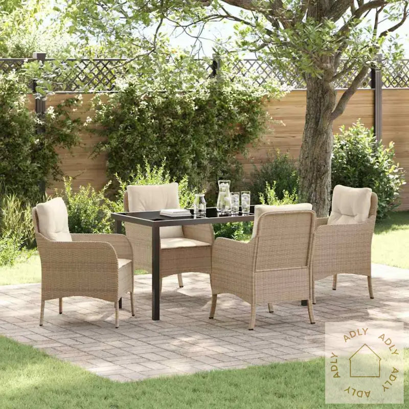 Holdbar konstruksjon: Stolene er laget av UV-bestandig PE rotting (poly rattan), et robust materiale som ser ut som naturlig rotting, men krever mye mindre vedlikehold. Perfekt for deg som vil ha stilrene utemøbler som tåler sol, regn og vind – samtidig som de er lette å holde rene.Komfort du kan føle: Hver stol leveres med tykke, myke puter med fyll av skum og bomull som gir god støtte og ekstra komfort. Dette gjør at du virkelig kan nyte tiden utendørs – om det så er på late ettermiddager i sola eller rolige sommerkvelder.Praktisk vedlikehold: Pute-trekkene kan enkelt tas av og vaskes, slik at settet holder seg like fint sesong etter sesong. Samtidig bidrar det til at uteplassen alltid ser ryddig og innbydende ut.Stabil og pålitelig: Den pulverlakkerte stålrammen sørger for solid stabilitet, så du kan trygt slappe av. Konstruksjonen gjør at settene passer for voksne og egner seg godt til både sosiale sammenkomster og rolige stunder alene.Stilig appell: Moderne design kombinert med beige poly rattan og kremhvite puter gir møbelsettet et eksklusivt uttrykk som matcher de fleste stiler. Setter prikken over i-en enten du inviterer venner på kaffe, eller bare vil ligge og nyte solen.Antall varer: 5Farge: BeigeForm: RektangulærMateriale: Syntetisk Poly RattanFinish: PulverlakkertInnendørs/Ute: Innendørs / UtendørsTrekk inkludert: NeiRom: Garten und TerrassegBatterier inkludert: NeiHodegavl inkludert: NeiKapasitet: 2 stolerMaksimalt antall personer: 4Maksimal vekt: 110 kgOverflatehøyde: 3 cmBens høyde: 42 cmSetedybde: 51 cmSittekapasitet: 1Gynger: NeiStige: NeiMerke: Leveransen inneholder: 1 x Hagebord, 4 x Hage Stoler, 4 x Ryggputer, 4 x SeteputerMontering nødvendig: JaAnbefalt antall personer for montering: 2