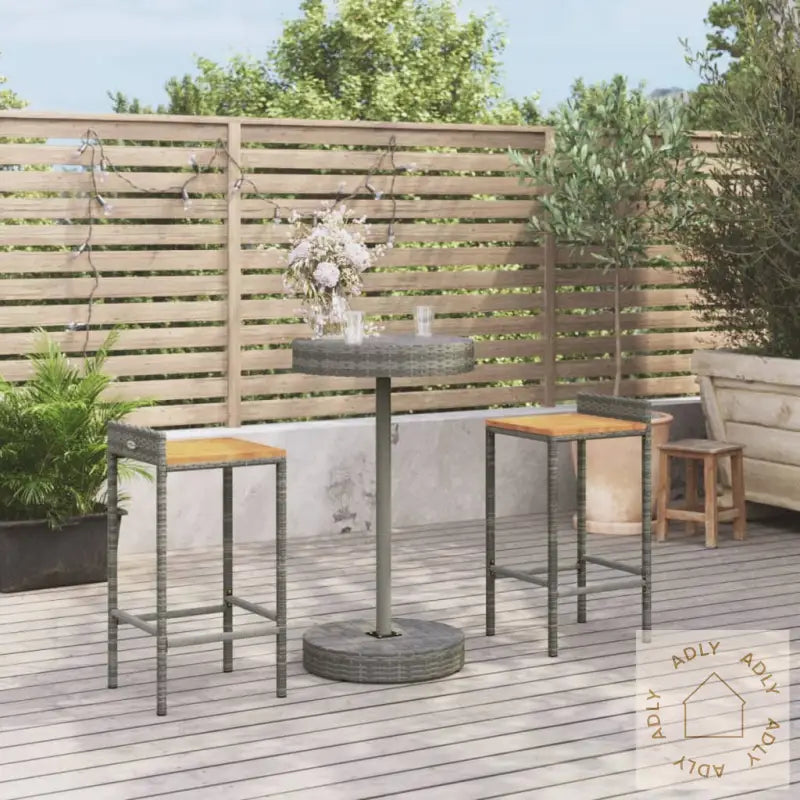 Værbestandig materiale: PE-rotting (polyrotting) tåler skiftende værforhold og gjør rengjøringen enkel. Overflaten holder seg innbydende gjennom flere sesonger, slik at hagemøblene dine alltid tar seg godt ut. Med sitt moderne uttrykk og brukervennlighet gir materialet en perfekt kombinasjon av estetikk og slitestyrke.Komfortable seter: Barkrakkene har innebygd fotstøtte, så du kan slappe av lenge om gangen. Setet i heltre akasie med naturlig finish gir et lunt utseende samtidig som det gir ekstra styrke og stabilitet. Akasietre er kjent for sin robuste kvalitet og er et populært valg til utebruk.Praktisk bord: Det runde barbordet sørger for god plass til både snacks, drikke og pynt. Perfekt når du vil nyte lange kvelder i godt selskap eller invitere til små utemiddager.Solid og stabil ramme: Settet er bygd med pulverlakkert stål, som beskytter mot rust og sikrer økt levetid. Stålkonstruksjonen gjør at både barkrakker og bord står støtt, selv etter mye bruk.Brede bruksområder: Det gjennomtenkte designet gjør at settet smelter fint inn både ute og inne. Du kan enkelt tilføre stil til hagen, terrassen eller som ekstra sitteplasser når du har gjester inne.Godt å vite: