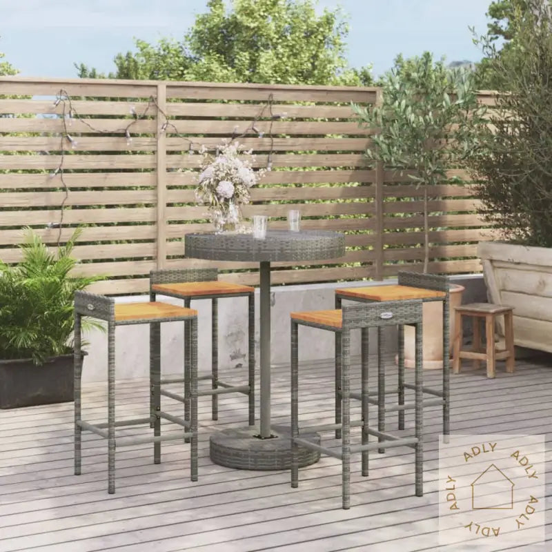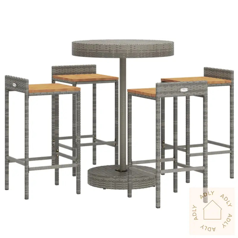 Dette trendy hagebarsettet er en perfekt kombinasjon av stil og funksjon og bidrar til å skape et naturlig midtpunkt i hagen, på terrassen eller andre uteplasser der du ønsker å samle venner og familie. Med sitt gjennomførte design løfter dette barsettet uttrykket til utendørsområdet ditt og gir det både komfort og et moderne preg.