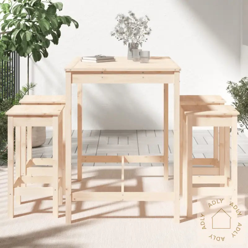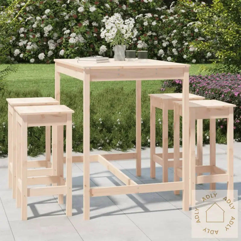 Ta en slurk av favorittdrinken eller nyt et godt måltid sammen med familien og venner rundt dette stilrene barsettet for hagen, laget i vakkert heltre furu.