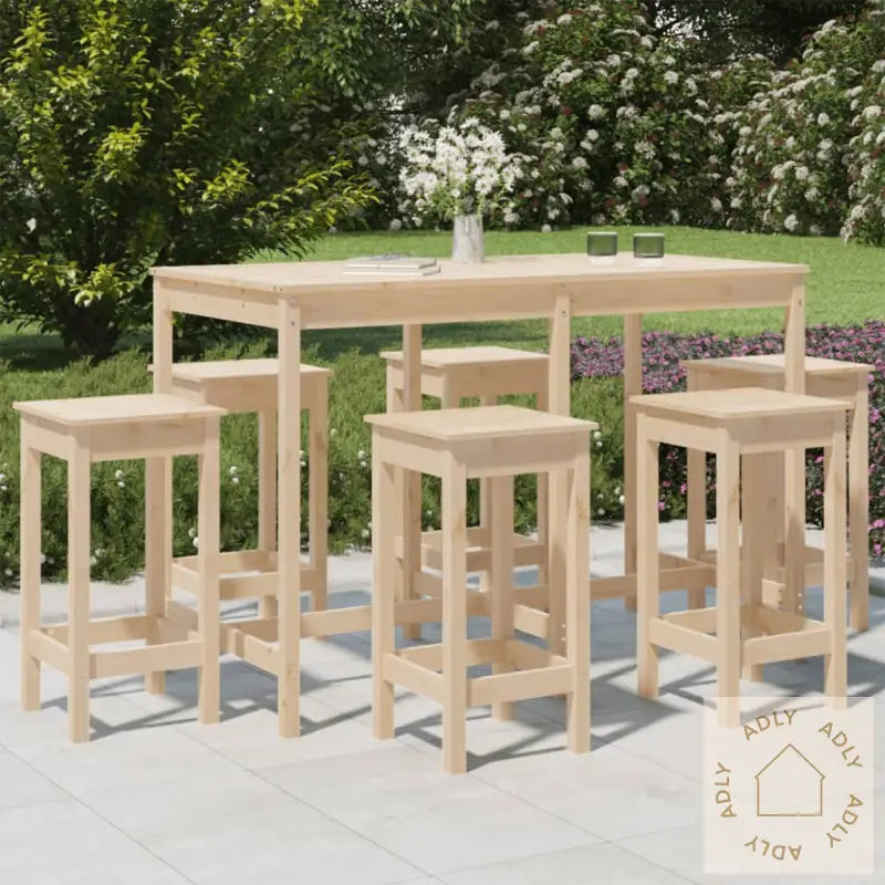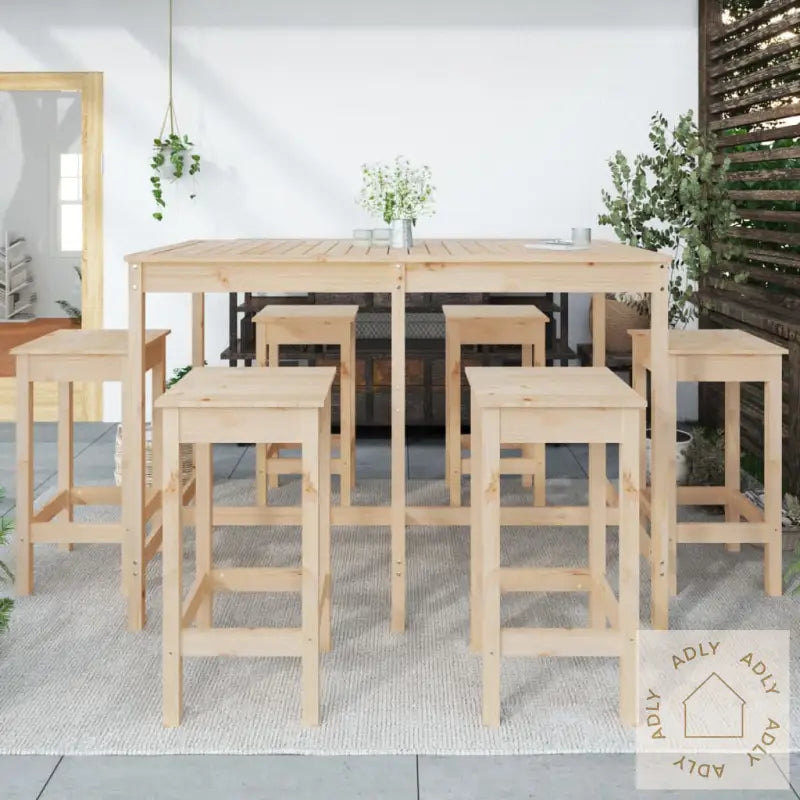 Ta en slurk av favorittdrinken eller nyt et måltid med familie og venner samlet rundt dette stilige hagebarsettet i heltre furu. Dette settet gir uteområdet ditt et naturlig og innbydende preg med sitt tidløse design – perfekt som en del av flotte hagemøbler eller som solide møbler til hjemmet.