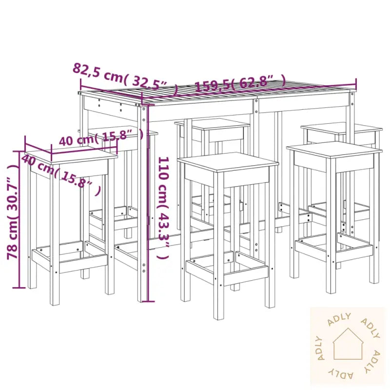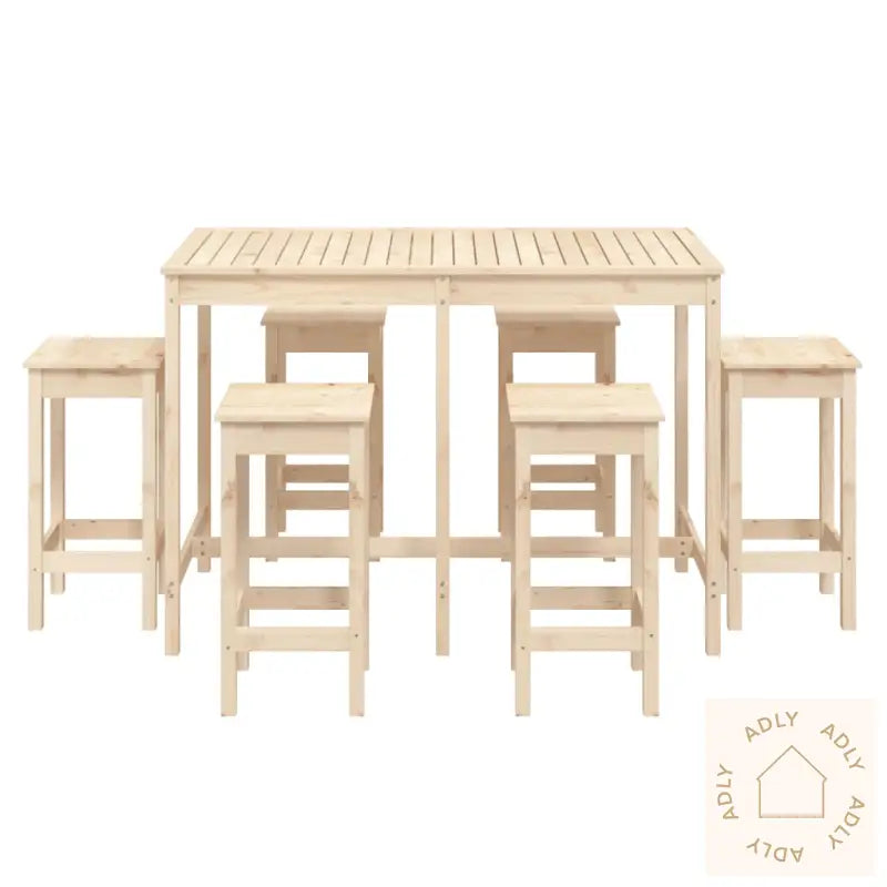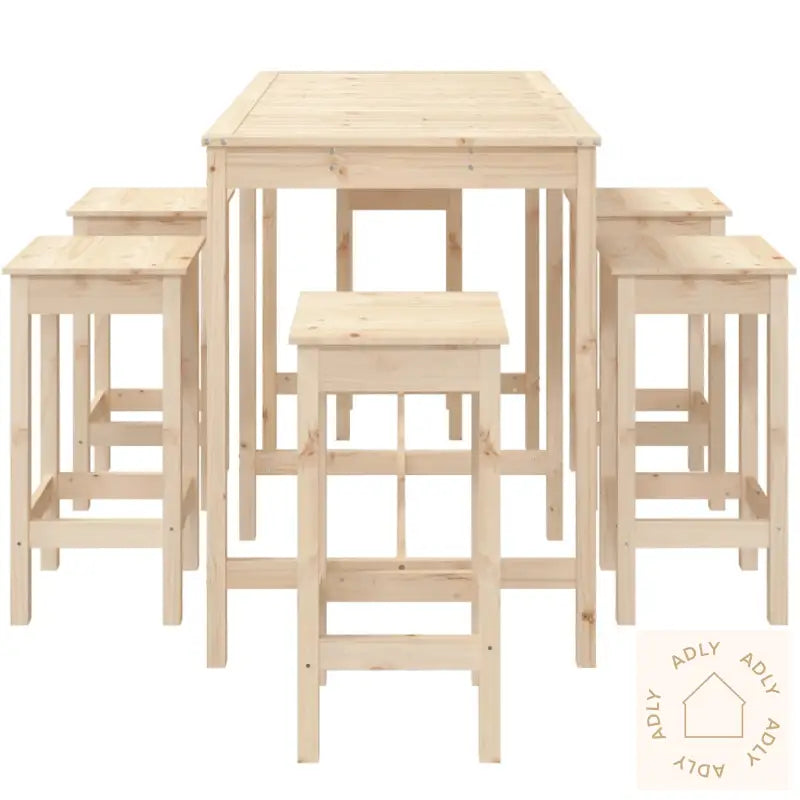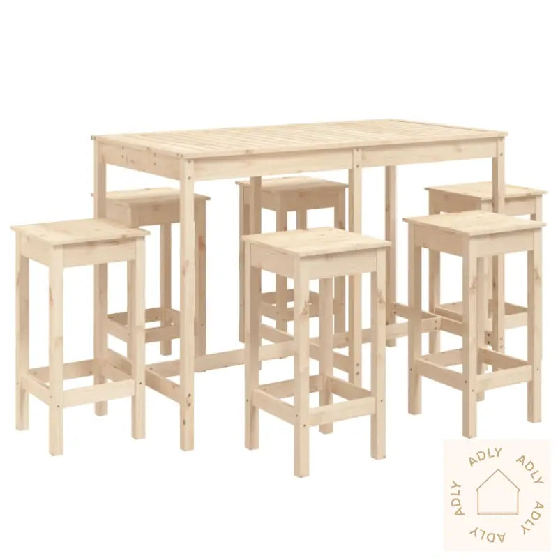 For å ta vare på dine hagemøbler anbefaler vi å bruke et vanntett trekk når møblene ikke er i bruk, slik at treverket holder seg pent år etter år.Materiale: heltre furu (ubehandlet)Mål barbord: 159,5 x 82,5 x 110 cm (B x D x H)Mål barkrakk (hver): 40 x 40 x 78 cm (L x B x H)Maksimal lastekapasitet (per sete): 110 kgMontering kreves: jaLeveransen inneholder:1 x barbord6 x barkrakker