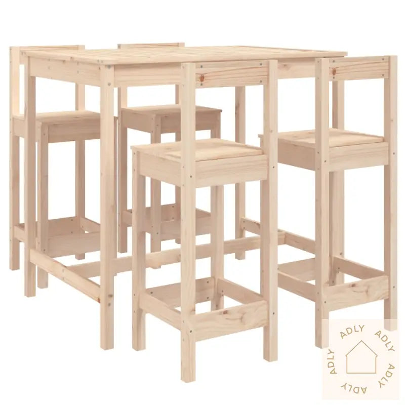 Heltre furu: Barsettet er produsert av ubehandlet heltre furu, kjent for sin styrke og naturlige sjarm. Møblene har unike årringer og synlige kvister som gir et autentisk, rustikt preg til uterommet. Dette er hagemøbler som virkelig lar naturens skjønnhet komme til sin rett.Solid topp: Barbordet har en kraftig bordplate, ideell når du trenger plass til drikkevarer, matretter eller dekorasjoner under hyggelige sammenkomster, enten det er hverdag eller fest.Komfortable seter: Barkrakkene er designet i slitesterkt tre og har både rygglene og innebygd fotstøtte. Dette gir ekstra støtte og sørger for at du kan sitte komfortabelt lenge, uansett om det er et raskt glass eller en lang kveld.Brede bruksområder: Settet sin minimalistiske stil gjør det enkelt å plassere nesten hvor som helst – enten på hageplassen, terrassen, balkongen eller i bakgården. Møblene passer også godt inn med andre hagemøbler du måtte ha fra før.Merk: