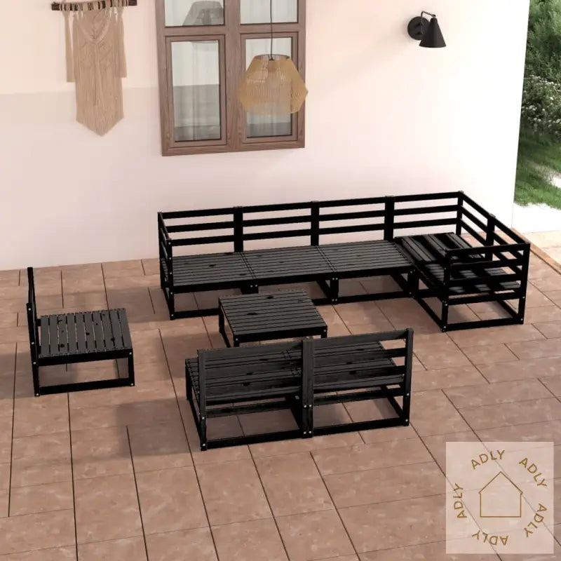 Farge: svartMateriale: heltre furuMål midt-/hjørnesofa (hver): 70 x 70 x 67 cm (B x D x H)Mål bord/fotskammel: 70 x 70 x 30 cm (B x D x H)Montering kreves: jaLeveransen inneholder:5 x midtsofaer3 x hjørnesofaer1 x bord/fotskammel