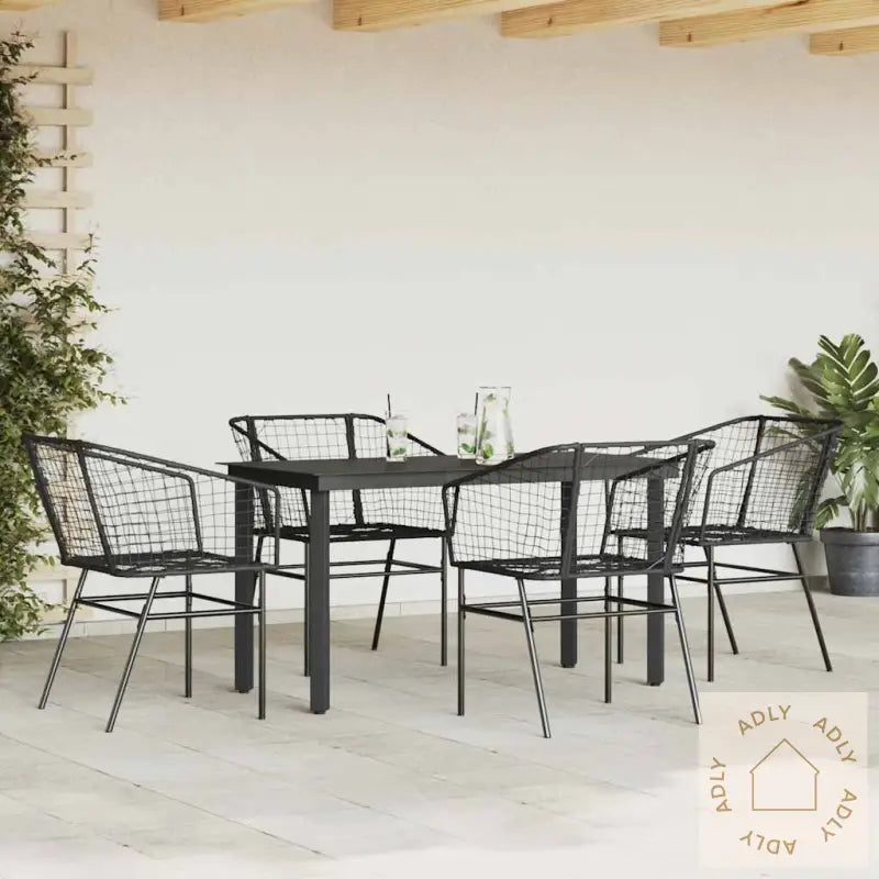 Komfortable stoler: Stolene har ergonomisk utformet ryggstøtte og armlener, slik at du kan sitte komfortabelt gjennom hele måltidet eller kosestunden ute. Den gjennomtenkte designen sikrer god støtte og en avslappet sittestilling.