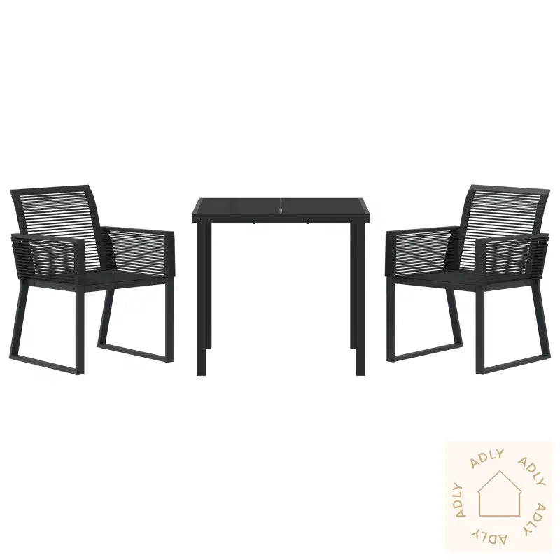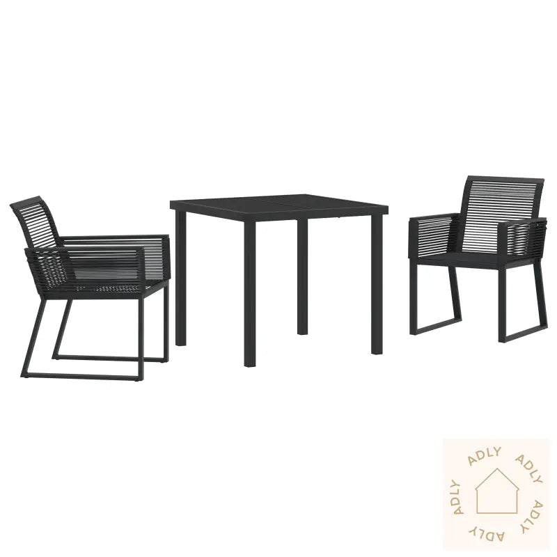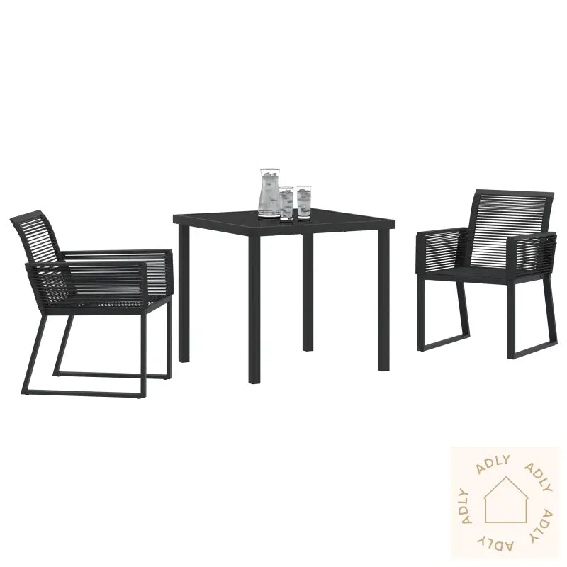 Stilig utseende: Svart poly rattan gir et eksklusivt og moderne uttrykk som gjør settet til et naturlig midtpunkt blant utemøbler, og inviterer til sosiale stunder hele sommeren.Antall varer: 3Farge: SvartForm: RektangulærMateriale: Syntetisk Poly RattanFinish: PulverlakkertInnendørs/Utendørs: Kun utendørsTrekk inkludert: NeiRom: Garten und TerrassegBatterier inkludert: NeiHodetelefon inkludert: NeiKapasitet: Maksimal belastning per sete er 110 kgMaksimalt antall personer: 2Maksimal vekt: 110 kgBens høyde: 39 cmSittedybde: 42 cmSittekapasitet: 1Gynge: NeiStige: NeiMerke: Leveransen inneholder: 2 x Spisestol, 1 x BordMontering kreves: JaAnbefalt antall personer for montering: 2