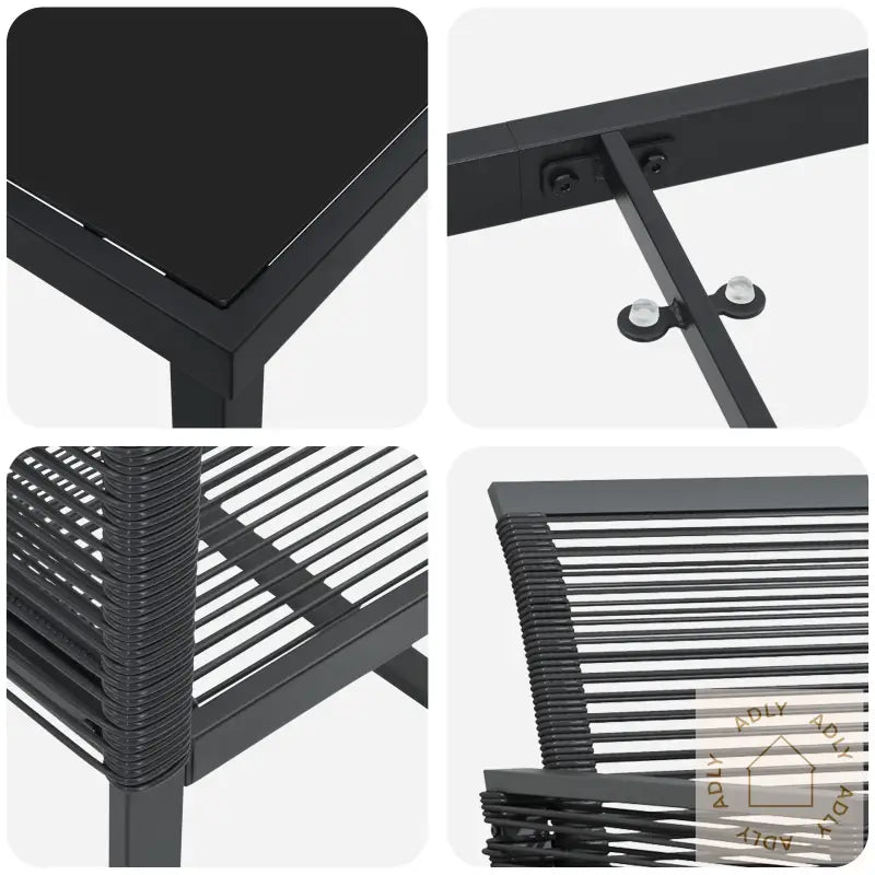 Robust ramme: Den solide stålrammen har en pulverlakkert finish, noe som gir ekstra beskyttelse mot rust og gir lang levetid selv etter mye bruk utendørs. Rammen gjør at settet står stødig, enten det brukes på terrasse, plen eller veranda.