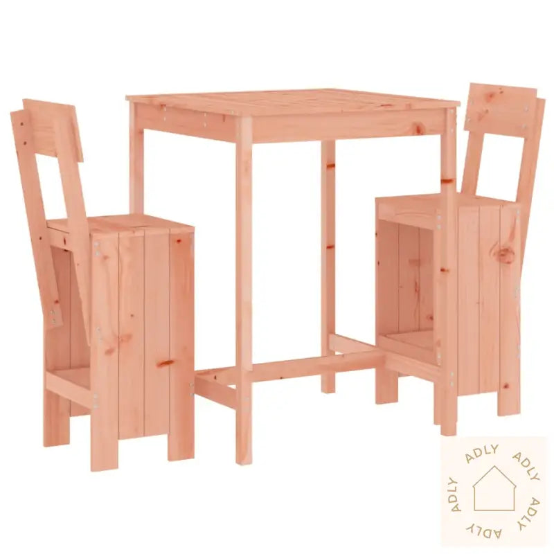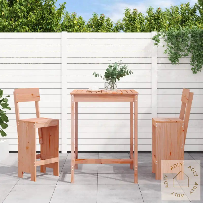 Barsettet er laget av heltre douglasgran – en slitesterk og robust tresort som er perfekt til utendørsmøbler. Denne typen tre tåler vær og vind svært godt, så du får hagemøbler som holder år etter år, med minimalt vedlikehold. Heltre douglasgran gir samtidig et naturlig og varmt uttrykk til uterommet.Bordet har en solid og romslig bordplate som gir god plass til drinker, mat eller dekor – enten du inviterer til grillfest eller bare vil ha det koselig ute. Designet gjør at det står stødig uansett hvor du velger å plassere det.Barkrakkene i settet har både rygg- og fotstøtte, så du sitter komfortabelt lenge – perfekt for lange sommerkvelder! De ergonomiske detaljene sørger for at du slapper av både i ryggen og bena mens du nyter selskapet.Det tidløse og minimalistiske designet gjør at dette terrassebarsettet enkelt passer inn i alle uterom, enten det er på verandaen, balkongen, bakgården eller midt i hagen. Det matcher også fint med flere typer møbler til hjemmet hvis du vil skape en helhetlig stil.Godt å vite: