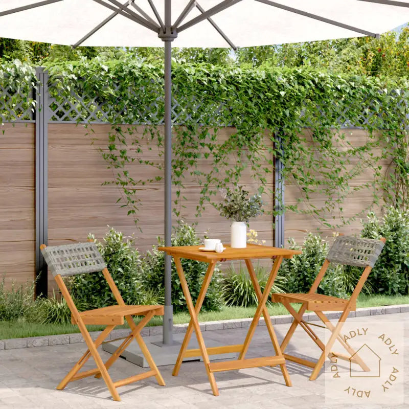 Robust og stabil: Møblene er produsert i heltre akasie, et naturmateriale som er kjent for sin styrke og lang levetid. Heltre akasie har vakre, naturlige fargenyanser og unike kornmønstre, noe som gir hvert møbel sitt eget særpreg. Dette gjør settet ekstra attraktivt blant hagemøbler, samtidig som det tåler norske værforhold året rundt.Slitesterkt materiale: Stolsetet er laget av PE-rotting (polyrotting), som ligner naturlig rotting, men er langt mer robust. Materialet er værbestandig, svært slitesterkt, krever minimalt med vedlikehold, og gjør det enkelt å holde møbelet pent. Perfekt egnet for deg som vil ha varige møbler til hjemmet og hagen.Praktisk design: Utestolene har et åpent design uten armlener, kun med ryggstøtte, så du får god bevegelsesfrihet. Selv uten puter får du fortsatt en komfortabel sittestilling, og designet gjør dem enkle å sette bort når du ikke bruker dem.Stabil bordplate: Det sammenleggbare bordet har en solid overflate med plass til alt du liker å ha for hånden – fra kaffekoppen til snacks, fruktkurver og pyntegjenstander. Sammenleggbart design: Hele settet – både hagestoler og bord – kan enkelt klappes sammen når det ikke er i bruk. Da er det superenkelt å lagre eller ta med på hytta, camping eller andre steder hvor du trenger fleksible utendørsmøbler.Godt å vite: